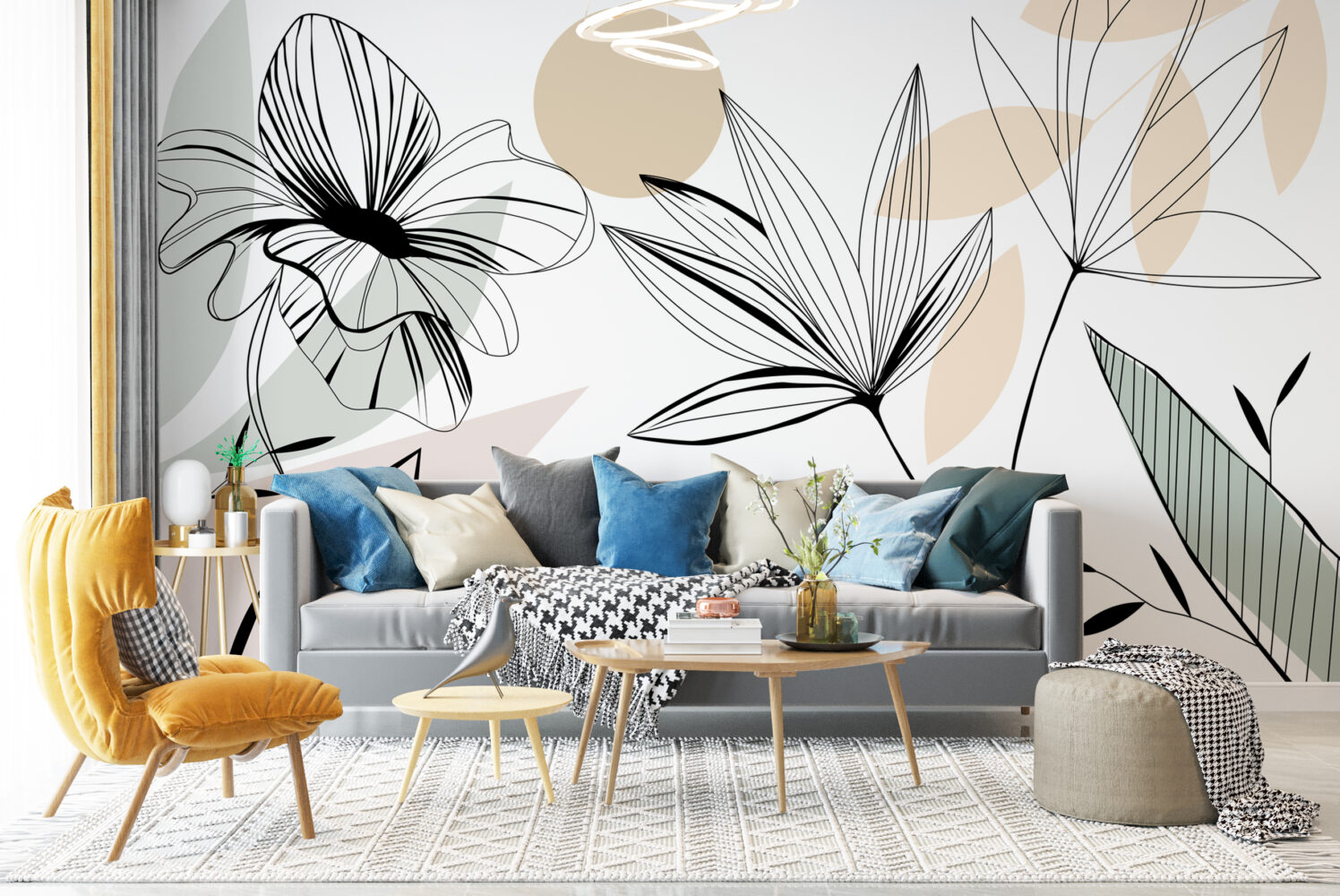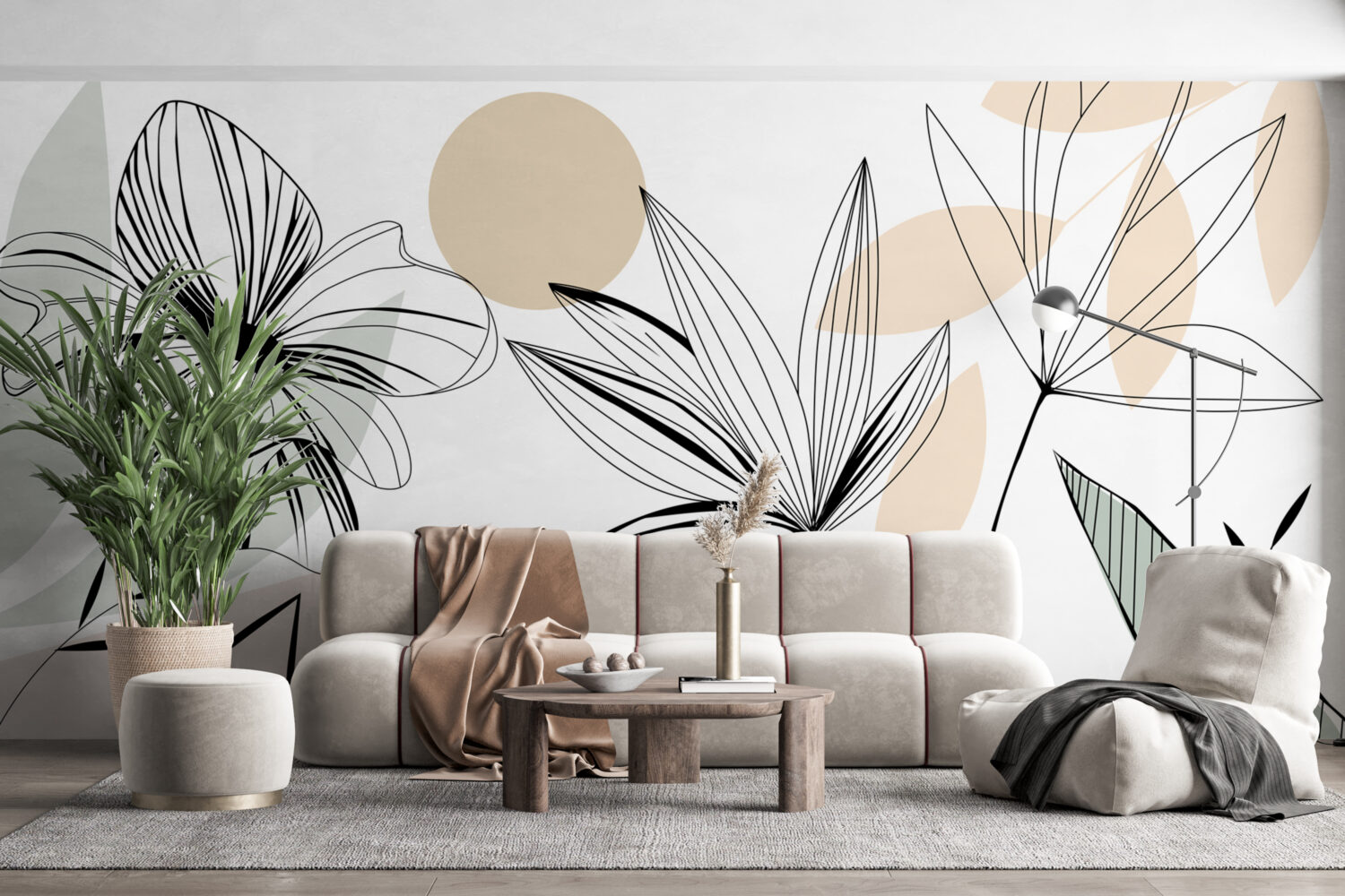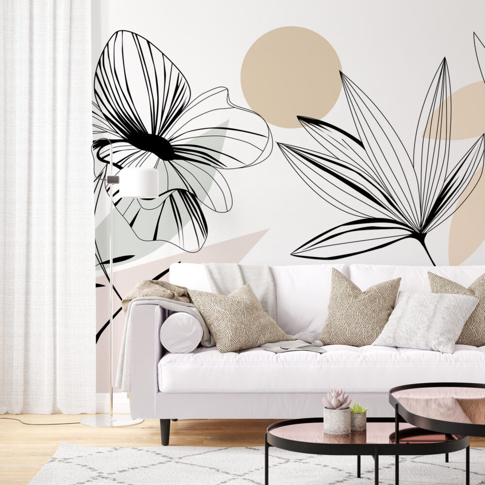 Soft Tonlar'da Çizgisel Çicek Duvar Kağıdı