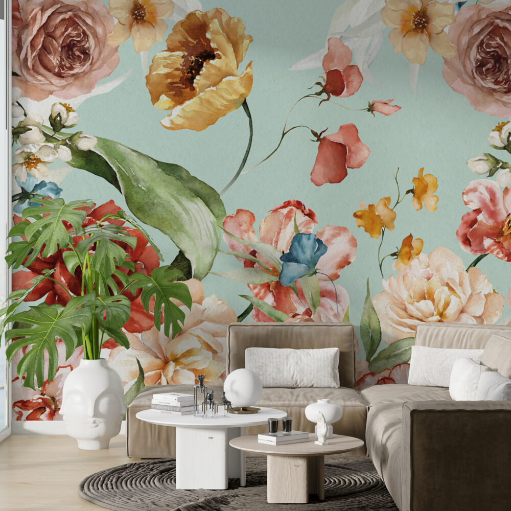 Soft Tonlarda Gül Bahçesi 3D Duvar Kağıdı