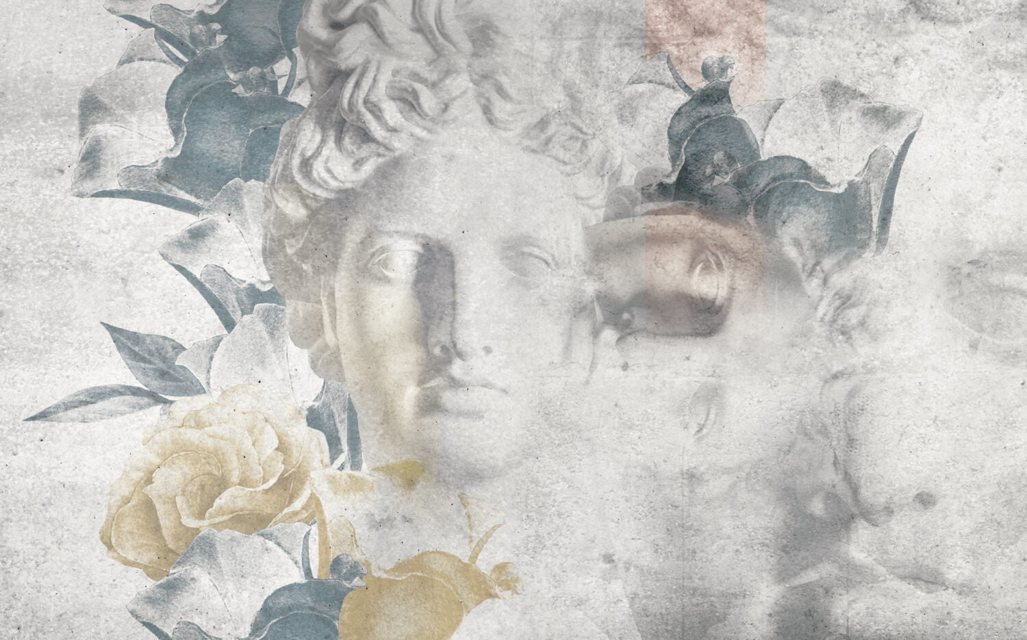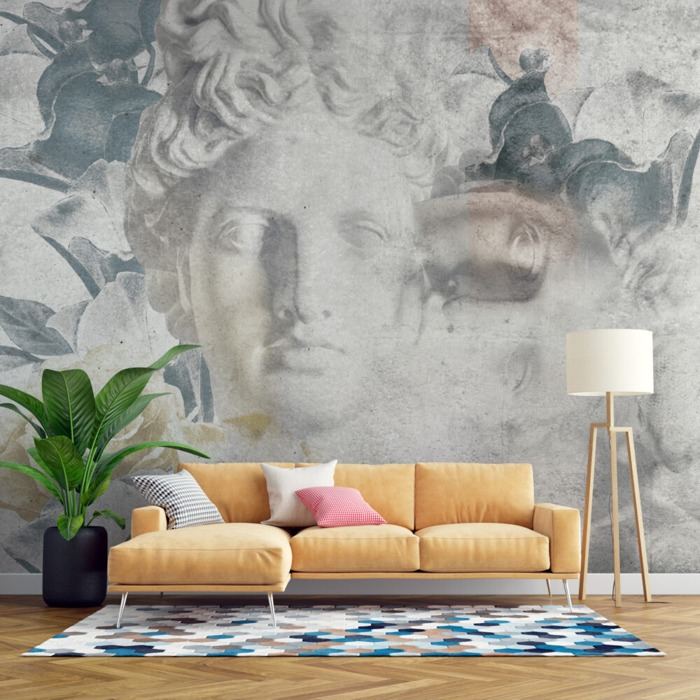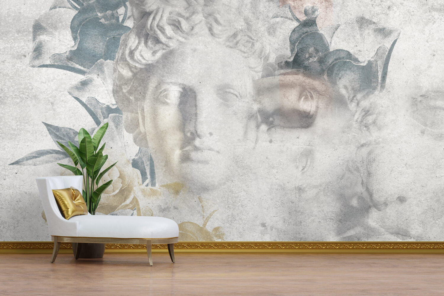 Soft Tonlar'da Heykel Suratları Ve Gül Desenli Duvar Kağıdı