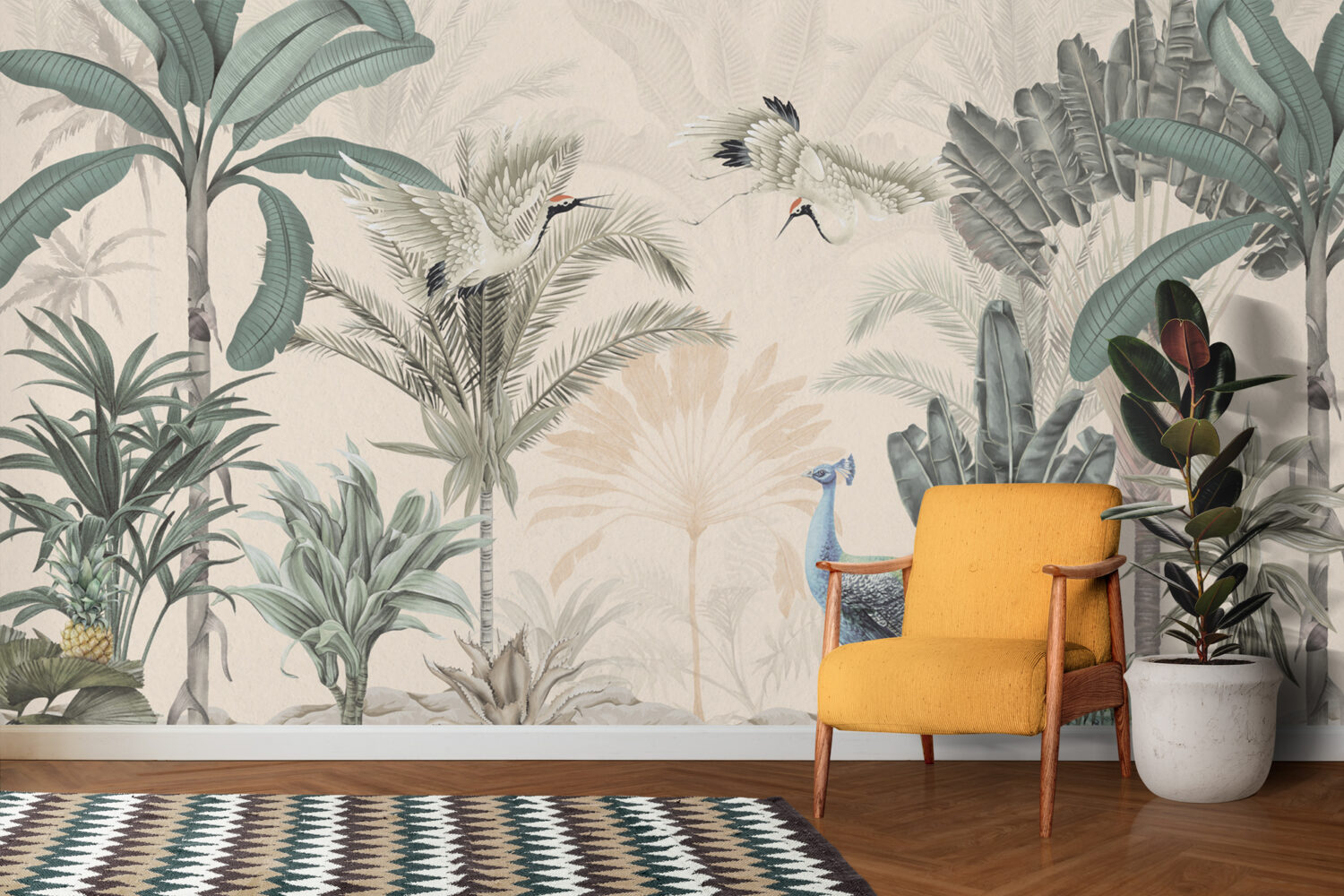 Soft Tonlarda Tropikal Ormandaki Kuşlar Duvar Kağıdı Duvar Kağıdı Ürün Bilgisi
