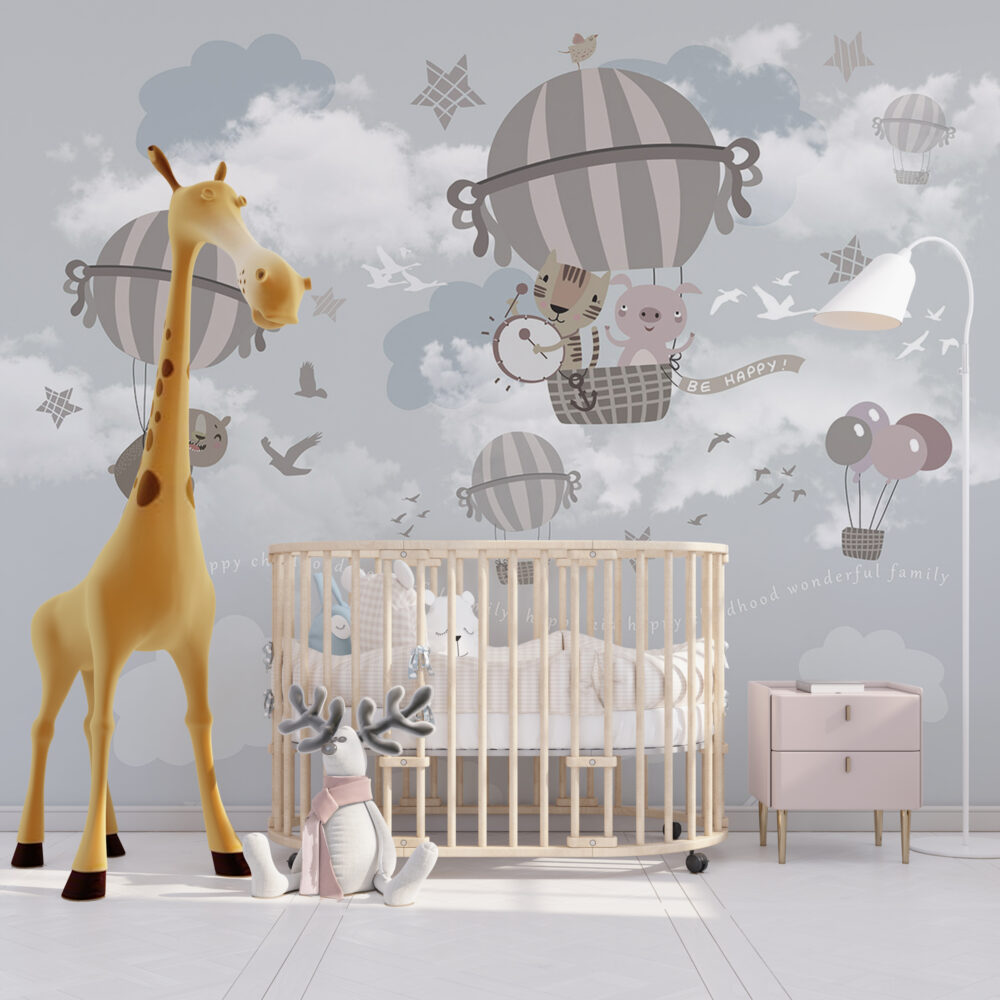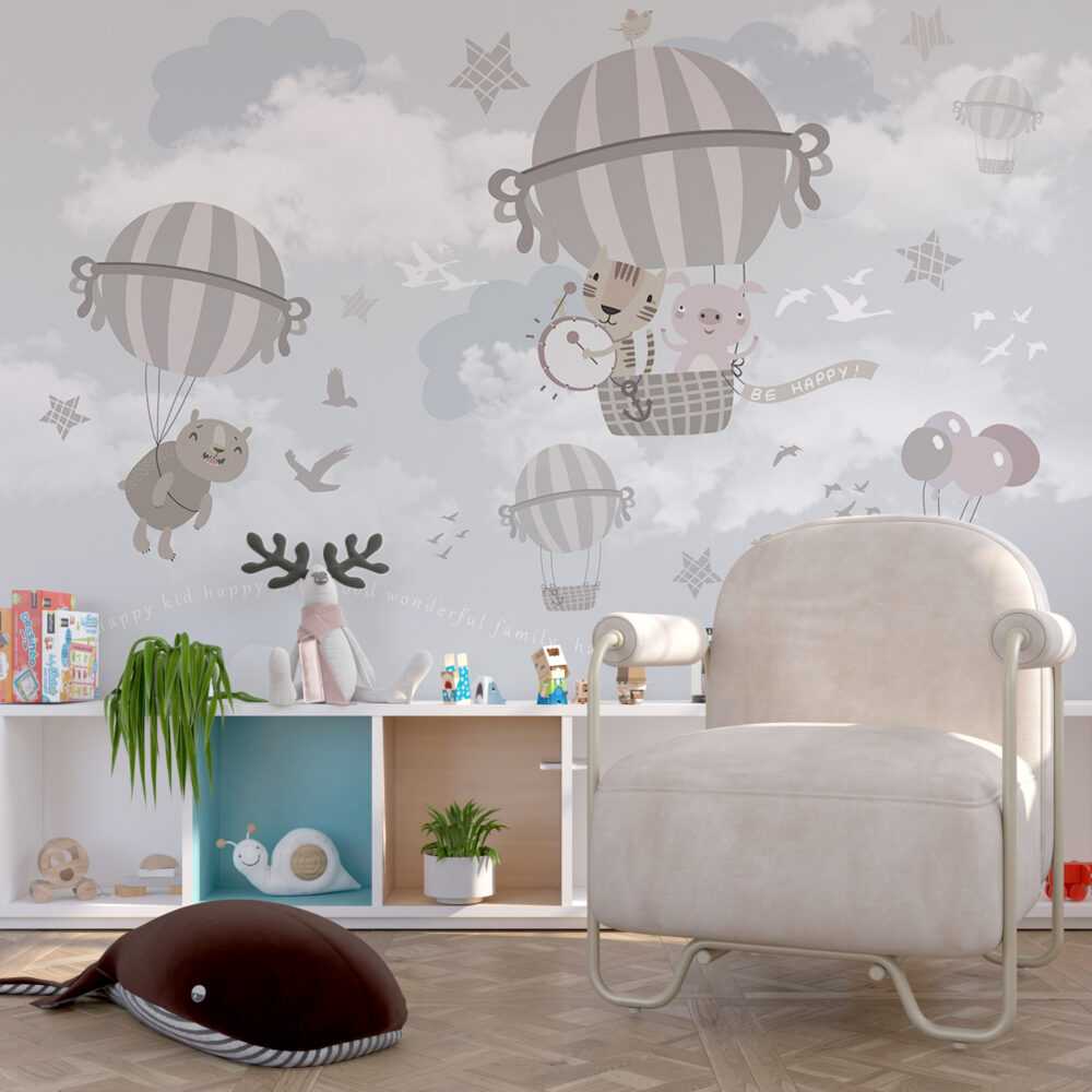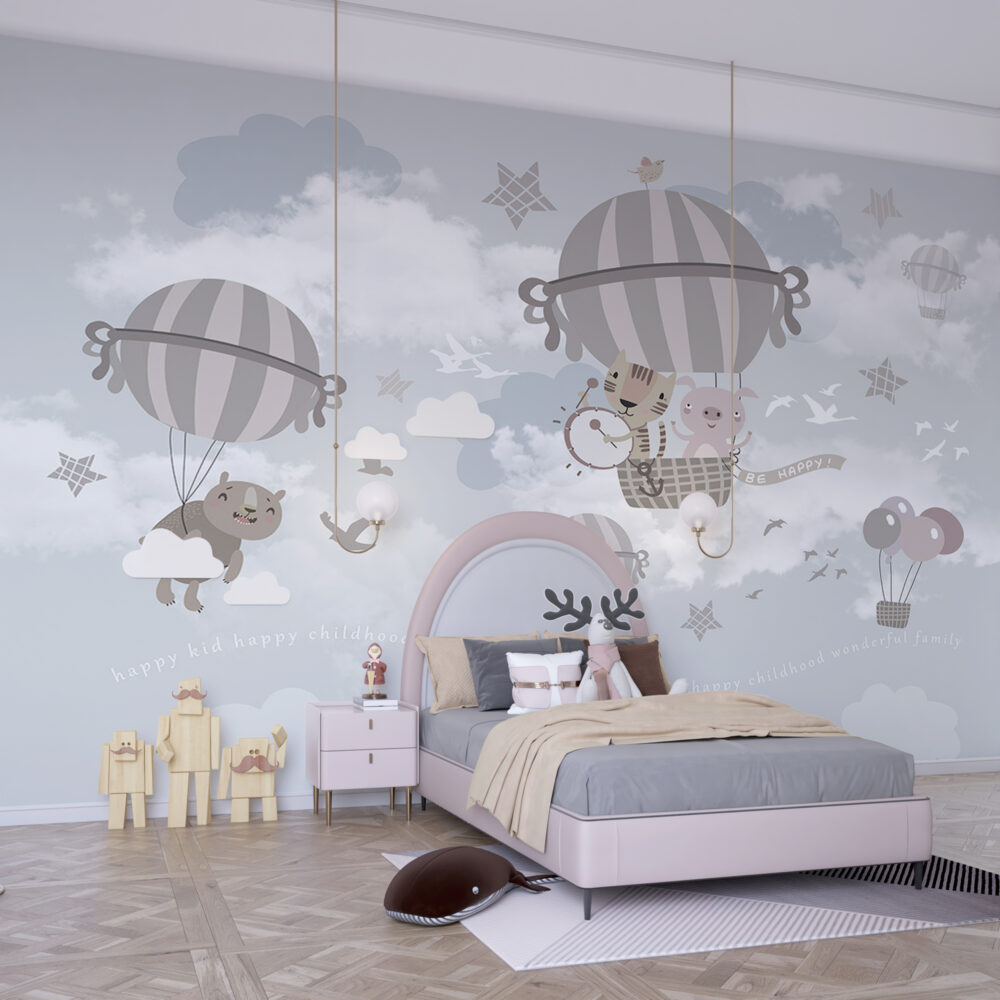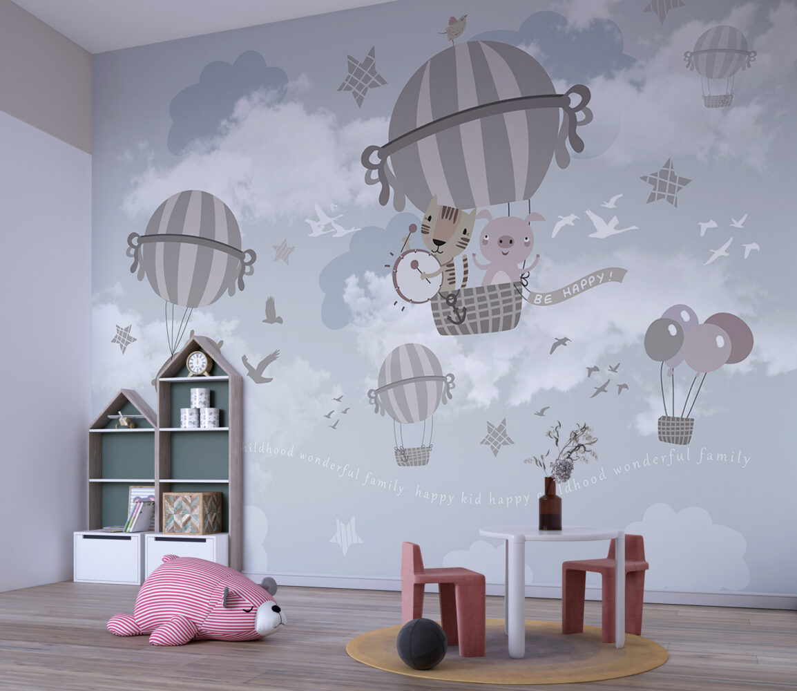 Soft Tonlar'da Uçan Balon İçerisinde ki Hayvanlar 3D Duvar Kağıdı Duvar Kağıdı Ürün Bilgisi
