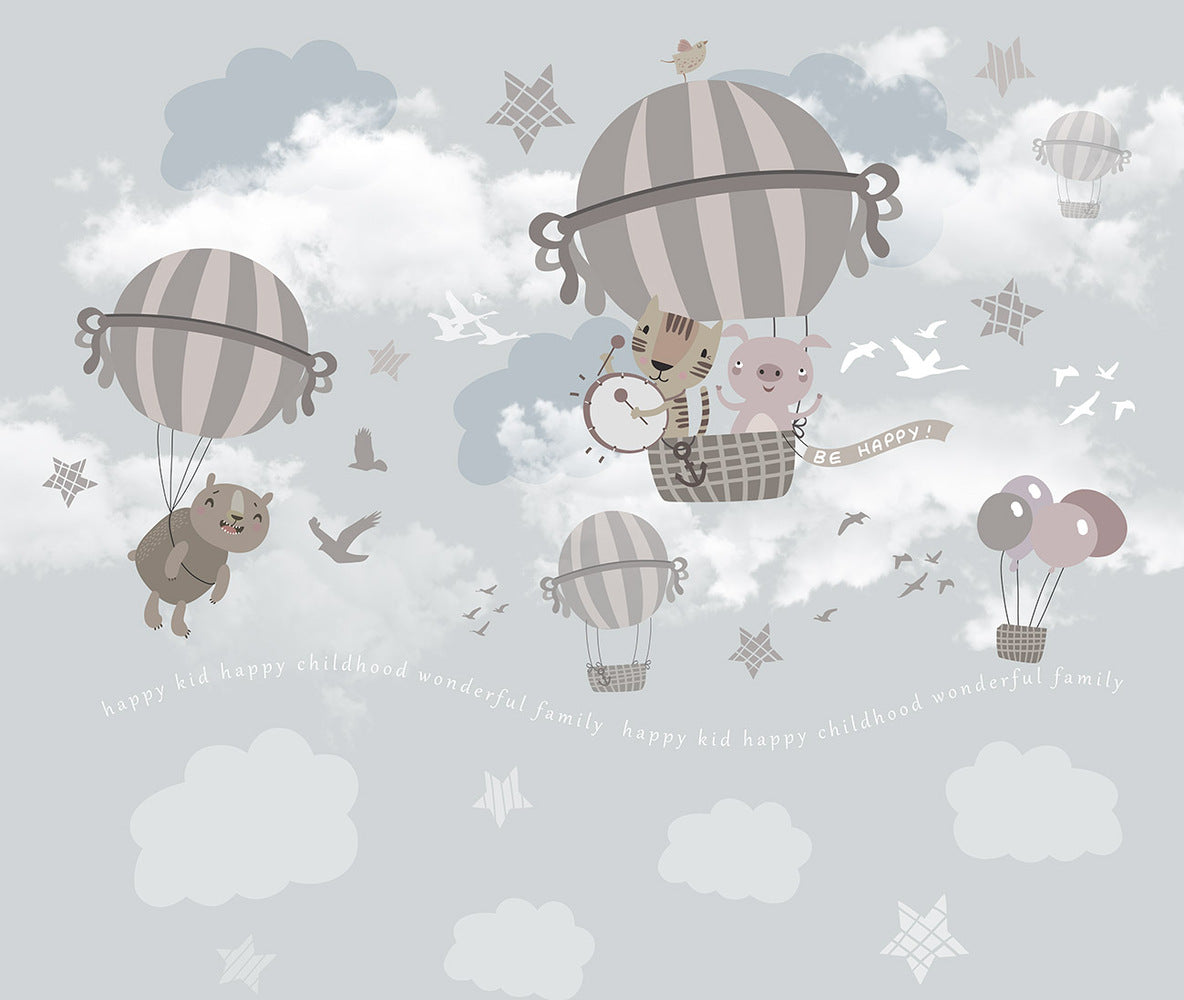 Soft Tonlar'da Uçan Balon İçerisinde ki Hayvanlar 3D Duvar Kağıdı üretimi, uygulanmasını isteyeceğiniz boyut ve konumuna uygun olarak talepleriniz doğrultusunda size özel imal edilir.