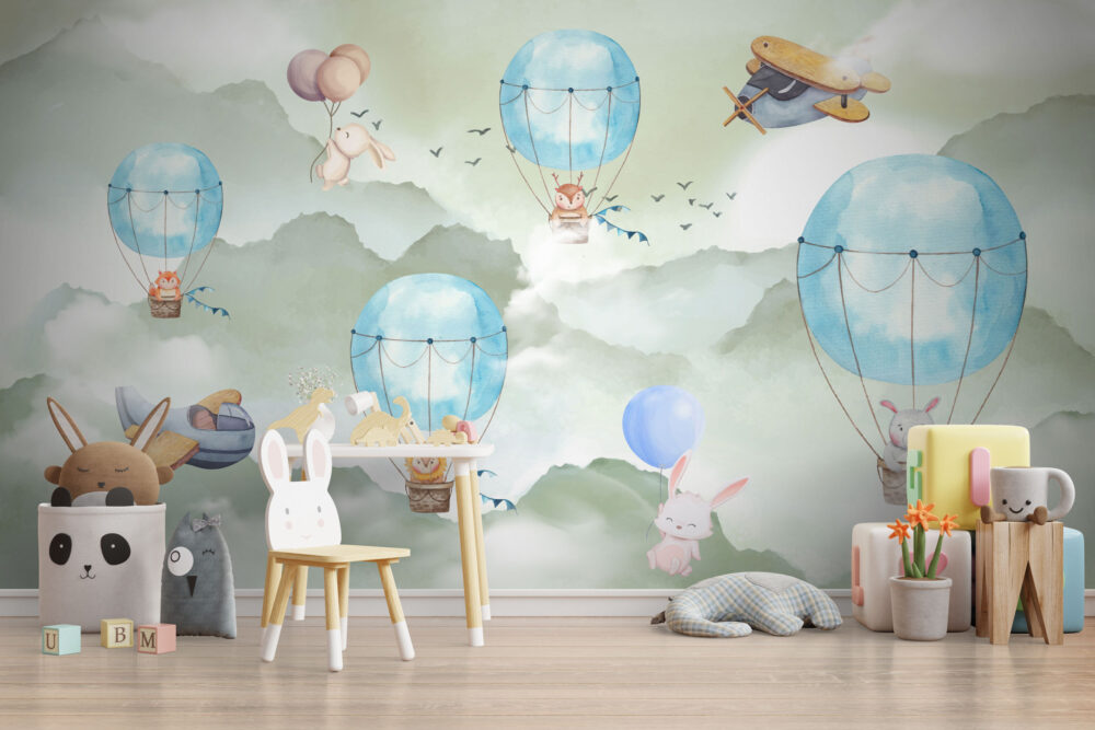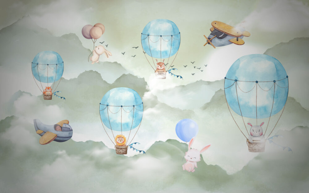 Soft Yeşil Tonların'da Uçan Sevimli Hayvanlı 3D Duvar Kağıdı Duvar Kağıdı Ürün Bilgisi