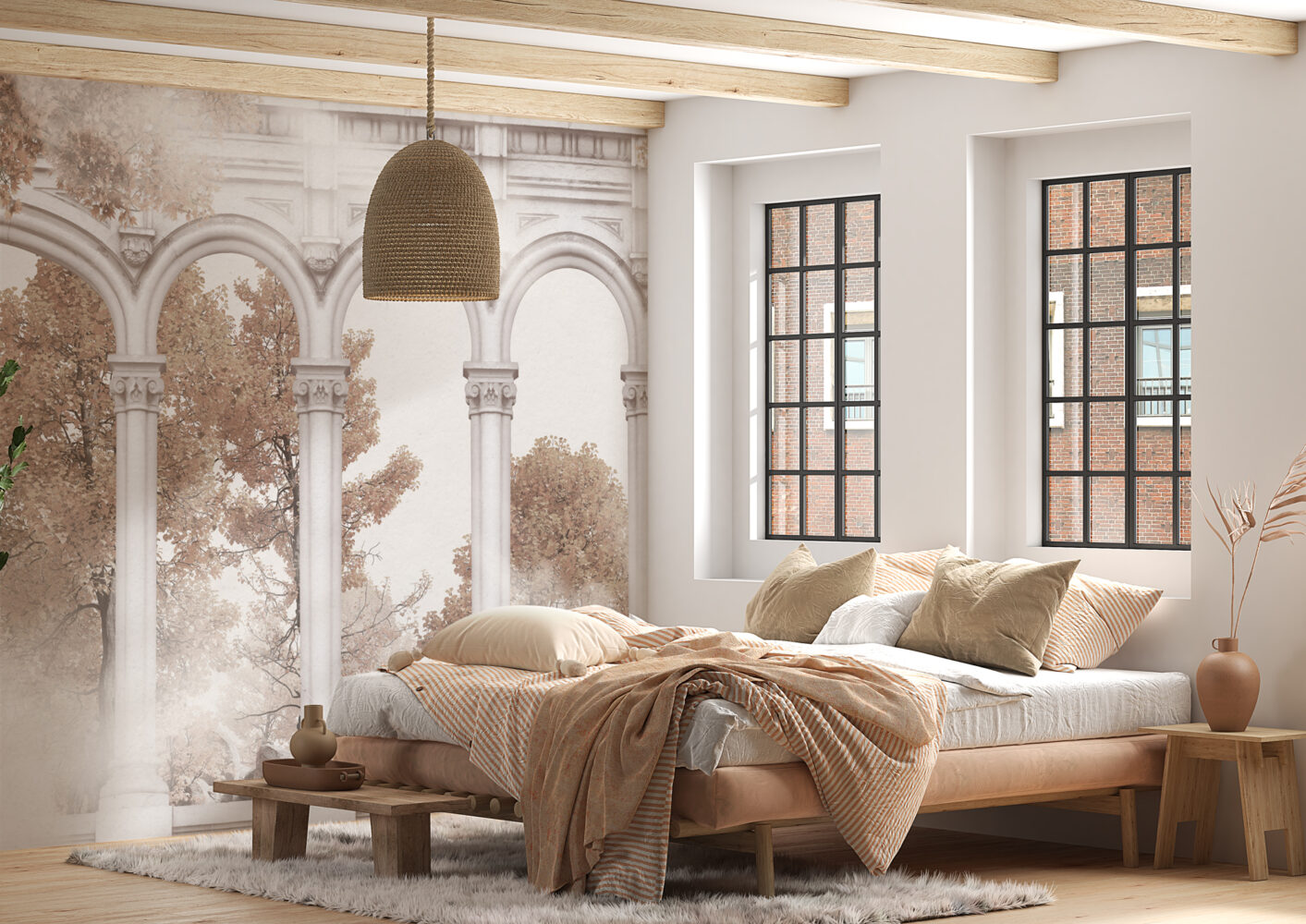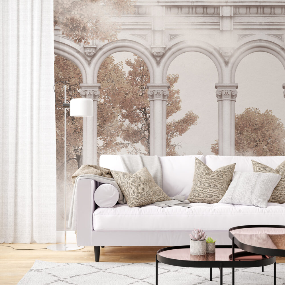 Soluk Tonlar'da Saray Bahçesin'den Görünen Orman Duvar Kağıdı üretimi, uygulanmasını isteyeceğiniz boyut ve konumuna uygun olarak talepleriniz doğrultusunda size özel imal edilir.