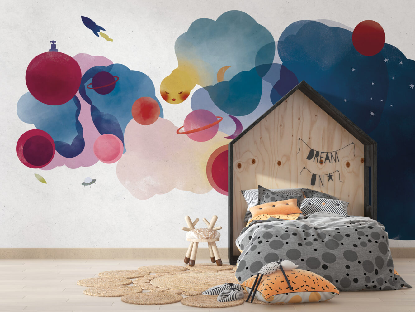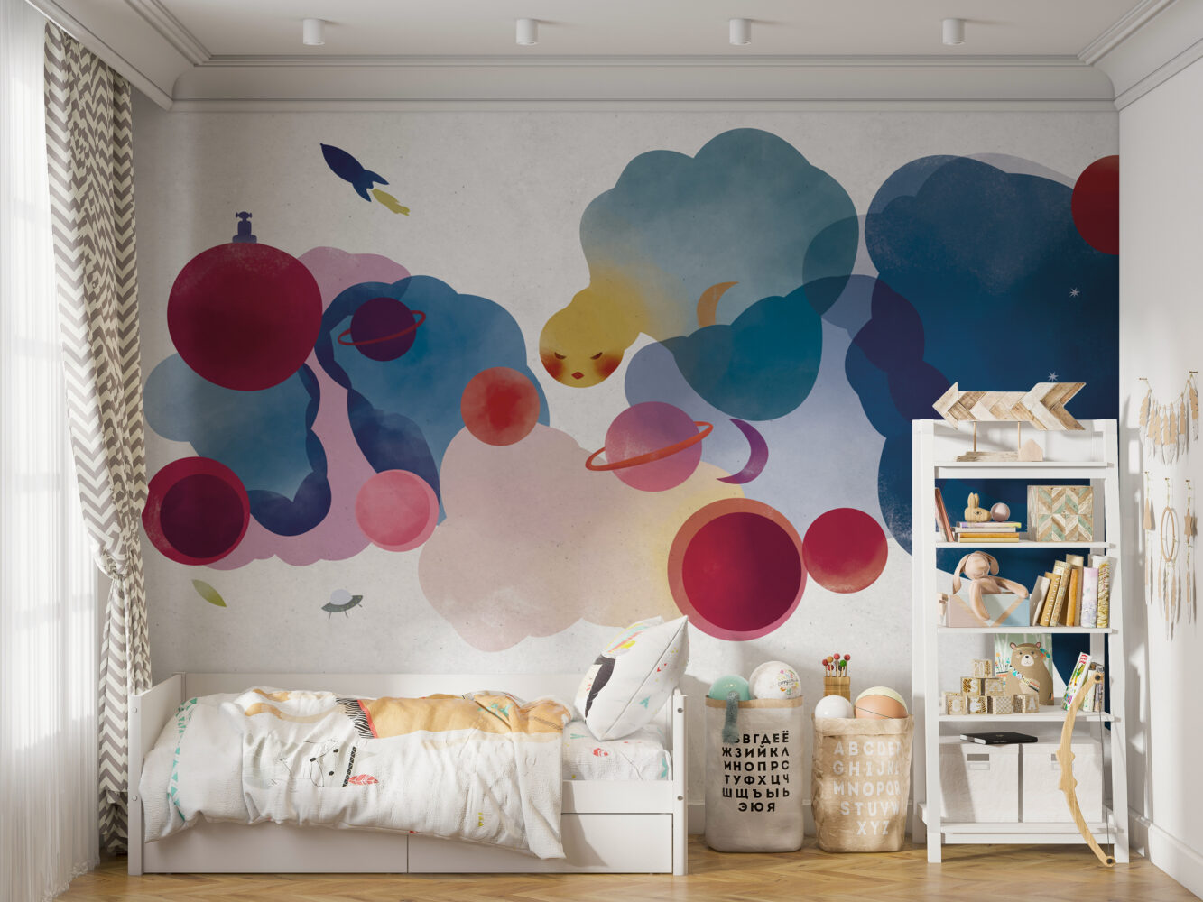 Sulu Boya Tarzında Gezegenler Duvar Kağıdı üretimi, uygulanmasını isteyeceğiniz boyut ve konumuna uygun olarak talepleriniz doğrultusunda size özel imal edilir.