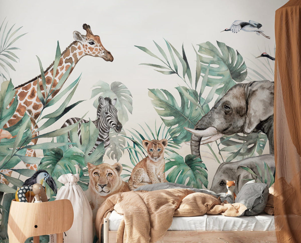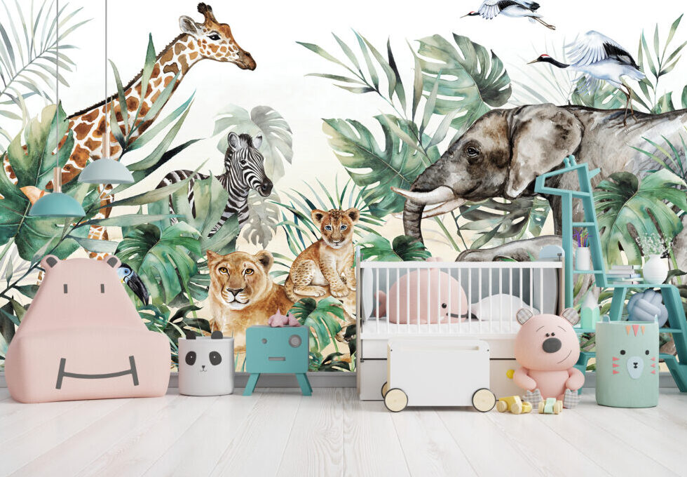 Sulu Boyalı Çok Hayvan Desenli 3D Duvar Kağıdı