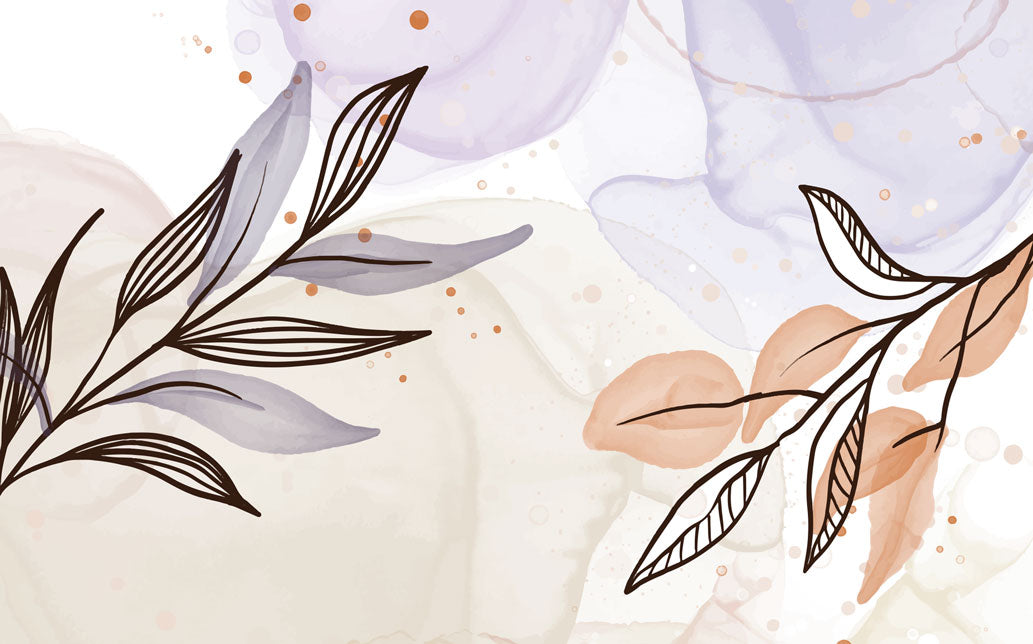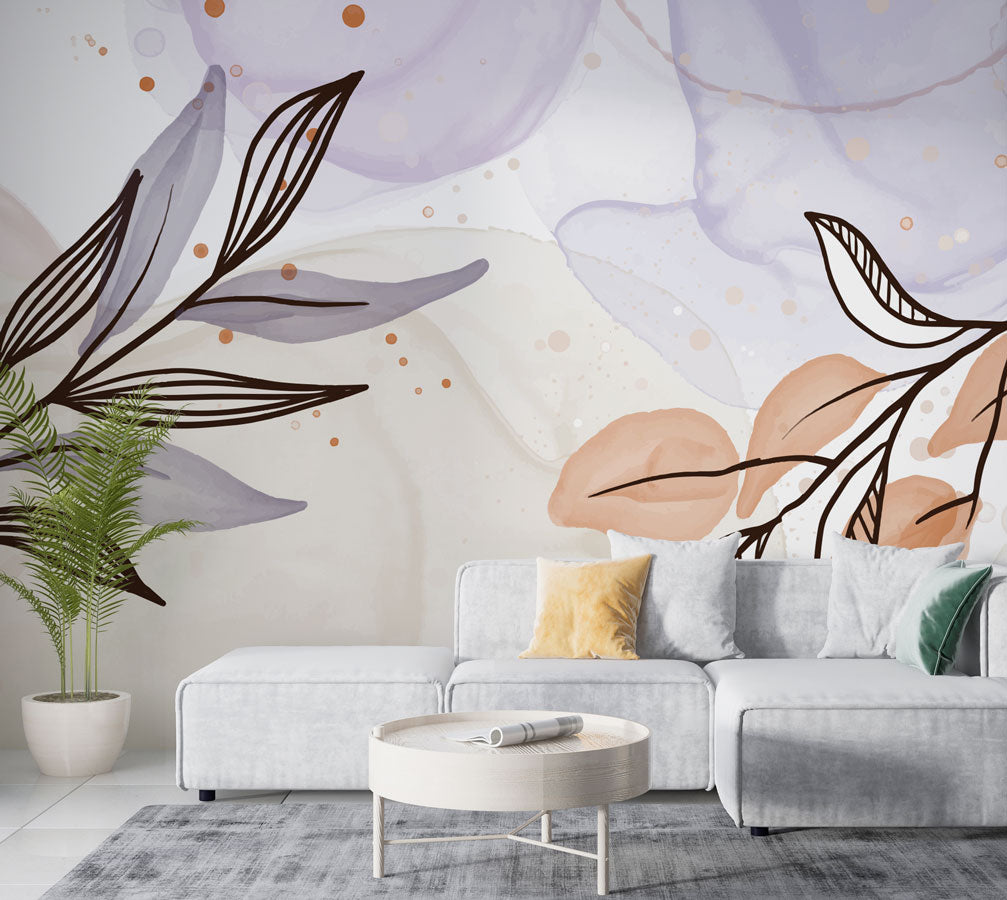 Suluboya Efektli Çizgisel Yapraklar Duvar Kağıdı