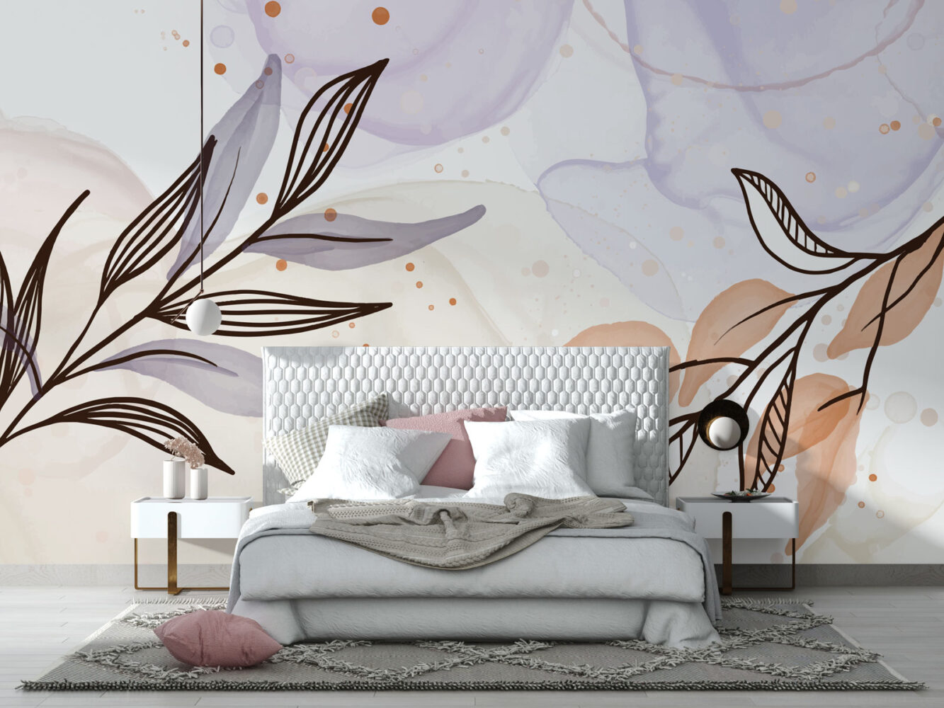 Suluboya Efektli Çizgisel Yapraklar Duvar Kağıdı üretimi, uygulanmasını isteyeceğiniz boyut ve konumuna uygun olarak talepleriniz doğrultusunda size özel imal edilir.