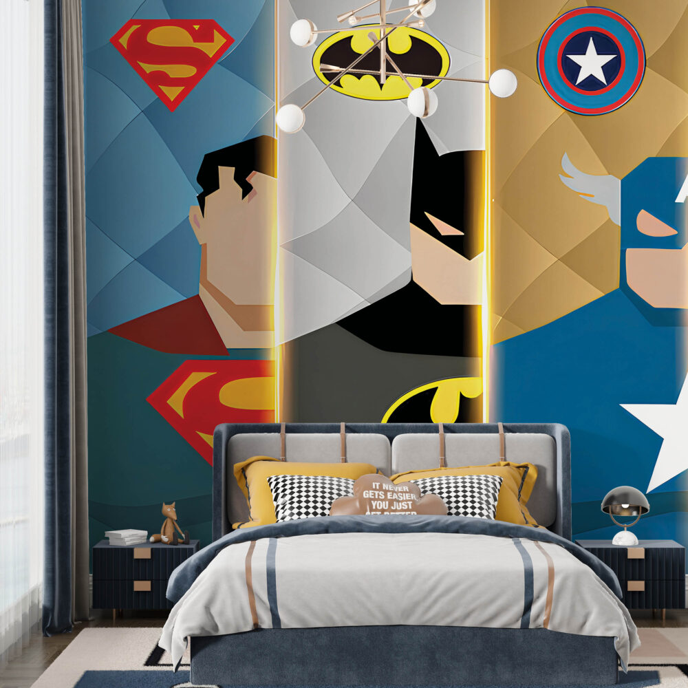 Süper Kahramanlar Avengers Dünyası Duvar Kağıdı üretimi, uygulanmasını isteyeceğiniz boyut ve konumuna uygun olarak talepleriniz doğrultusunda size özel imal edilir.