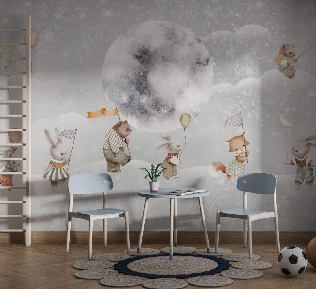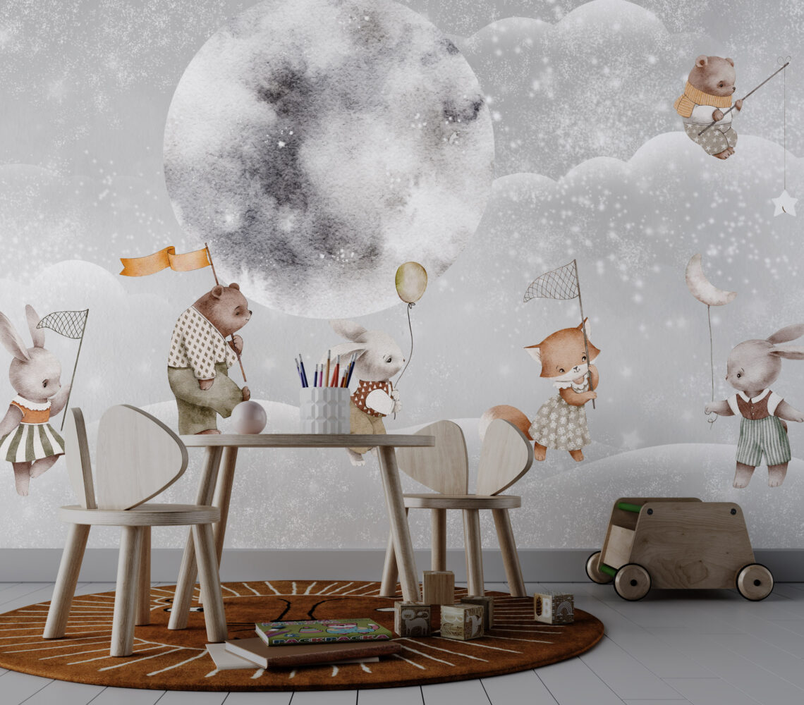 Tavşan ve Ayı Dostlar Ay Sefasında 2 Duvar Kağıdı üretimi, uygulanmasını isteyeceğiniz boyut ve konumuna uygun olarak talepleriniz doğrultusunda size özel imal edilir.