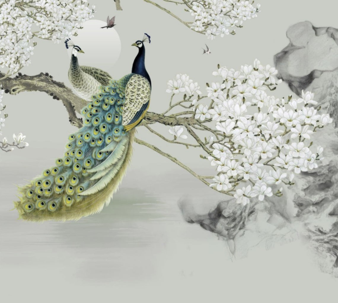 Tavus Kuşu Çiçekli 3D Duvar Kağıdı Duvar Kağıdı Ürün Bilgisi