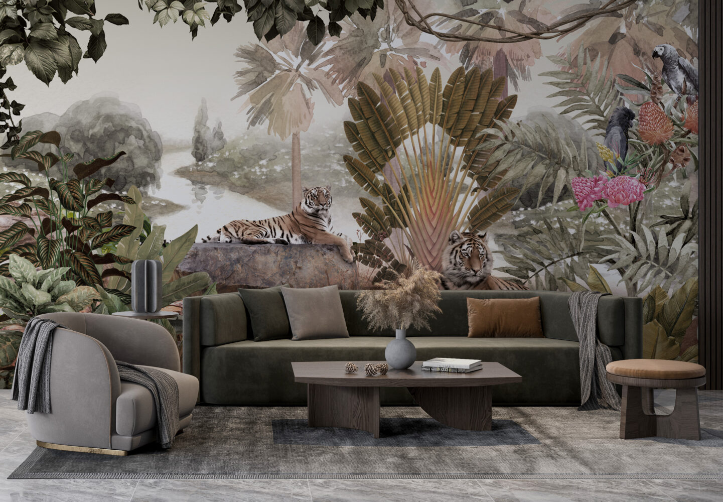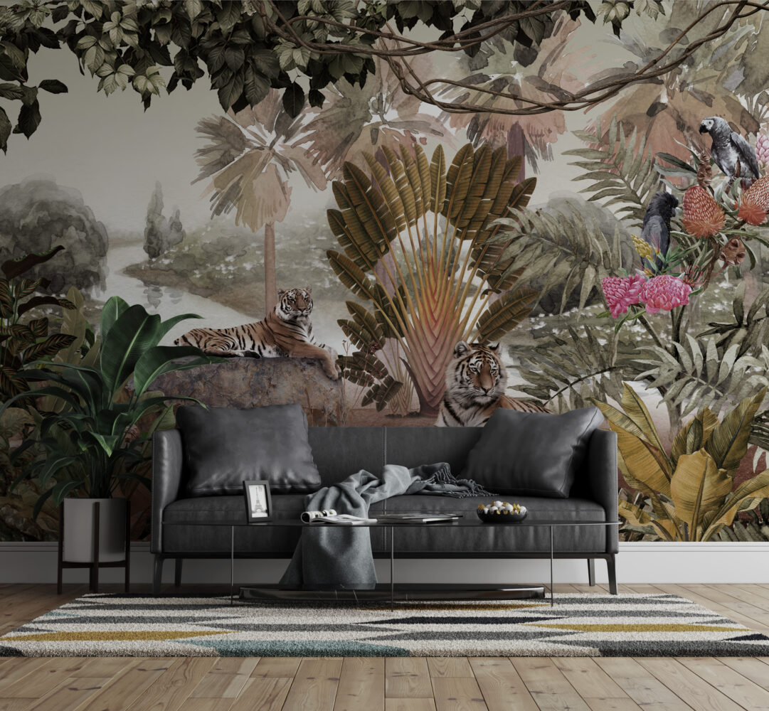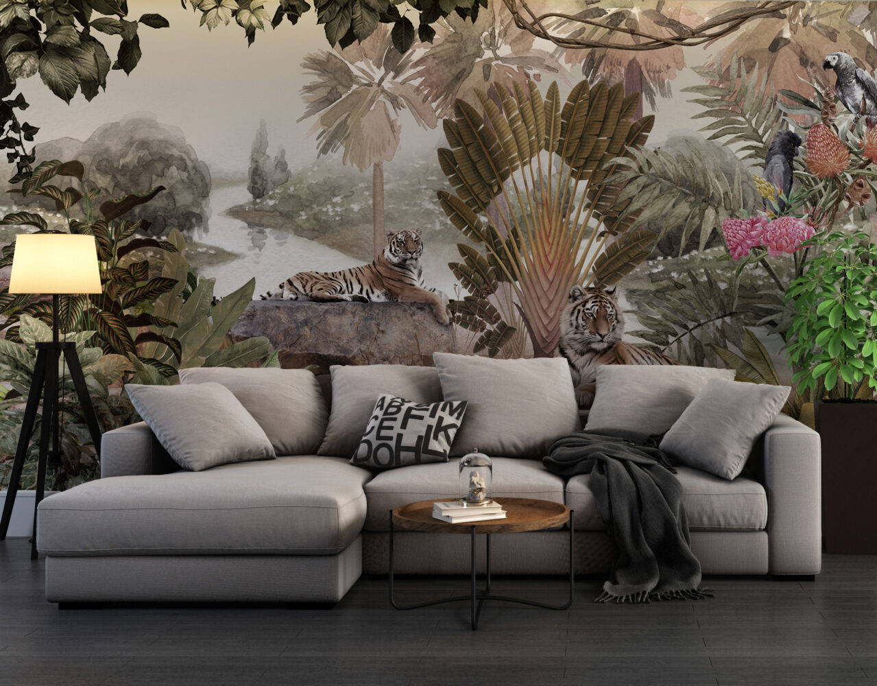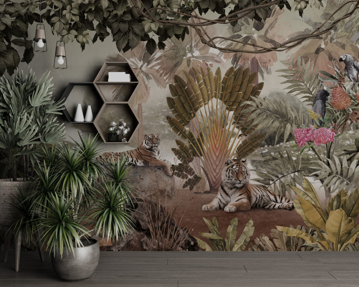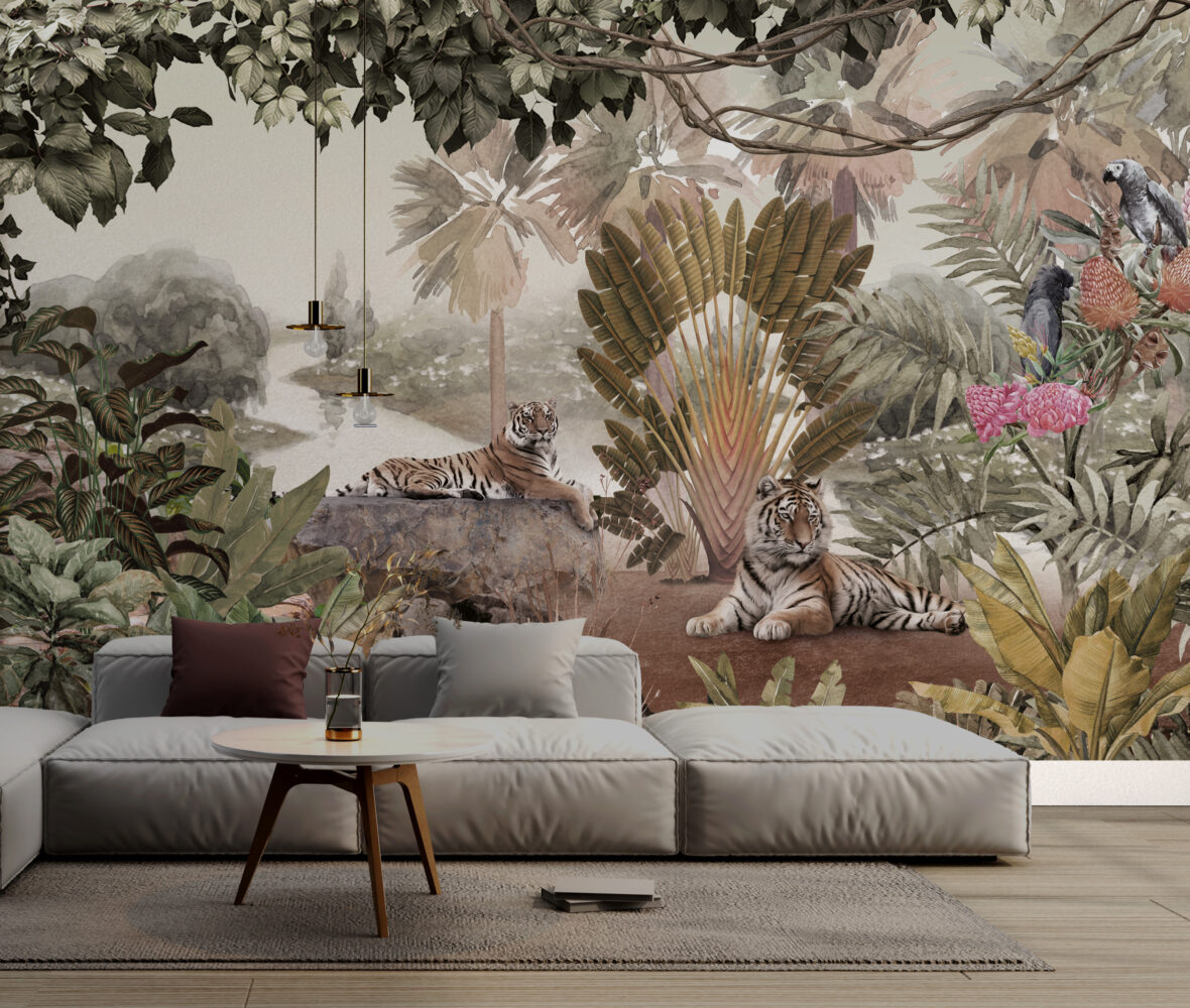 Tropik Ormandaki Kaplanlar ve Kuşlar Duvar Kağıdı Duvar Kağıdı Ürün Bilgisi