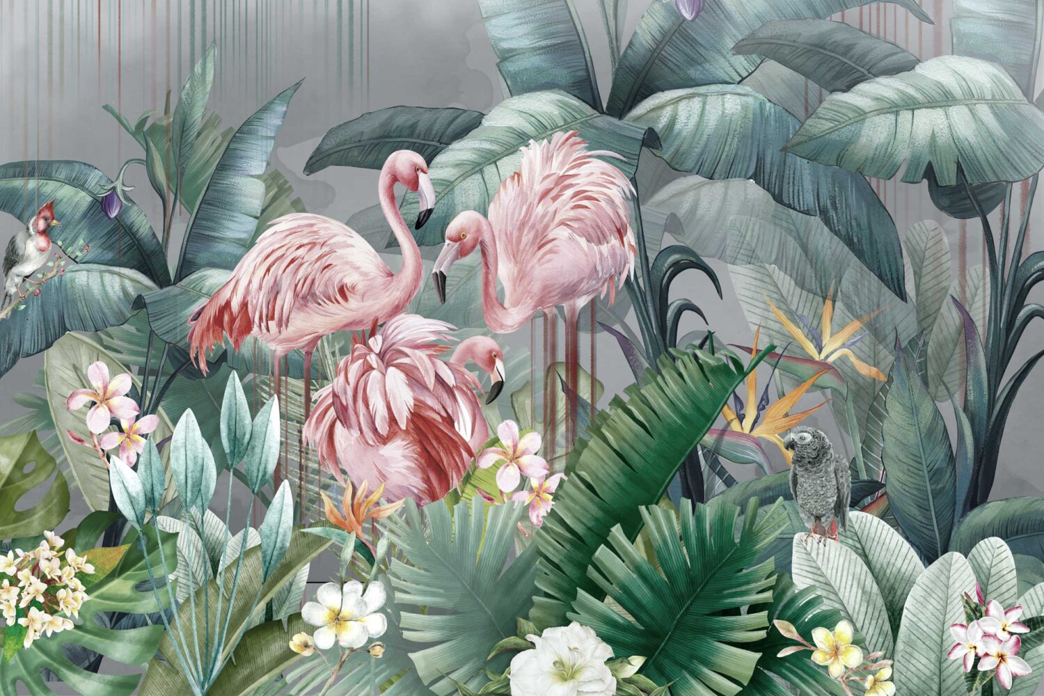 Tropikal Bahçede Flamingolu ve Papağanlı Duvar Kağıdı Duvar Kağıdı Ürün Bilgisi
