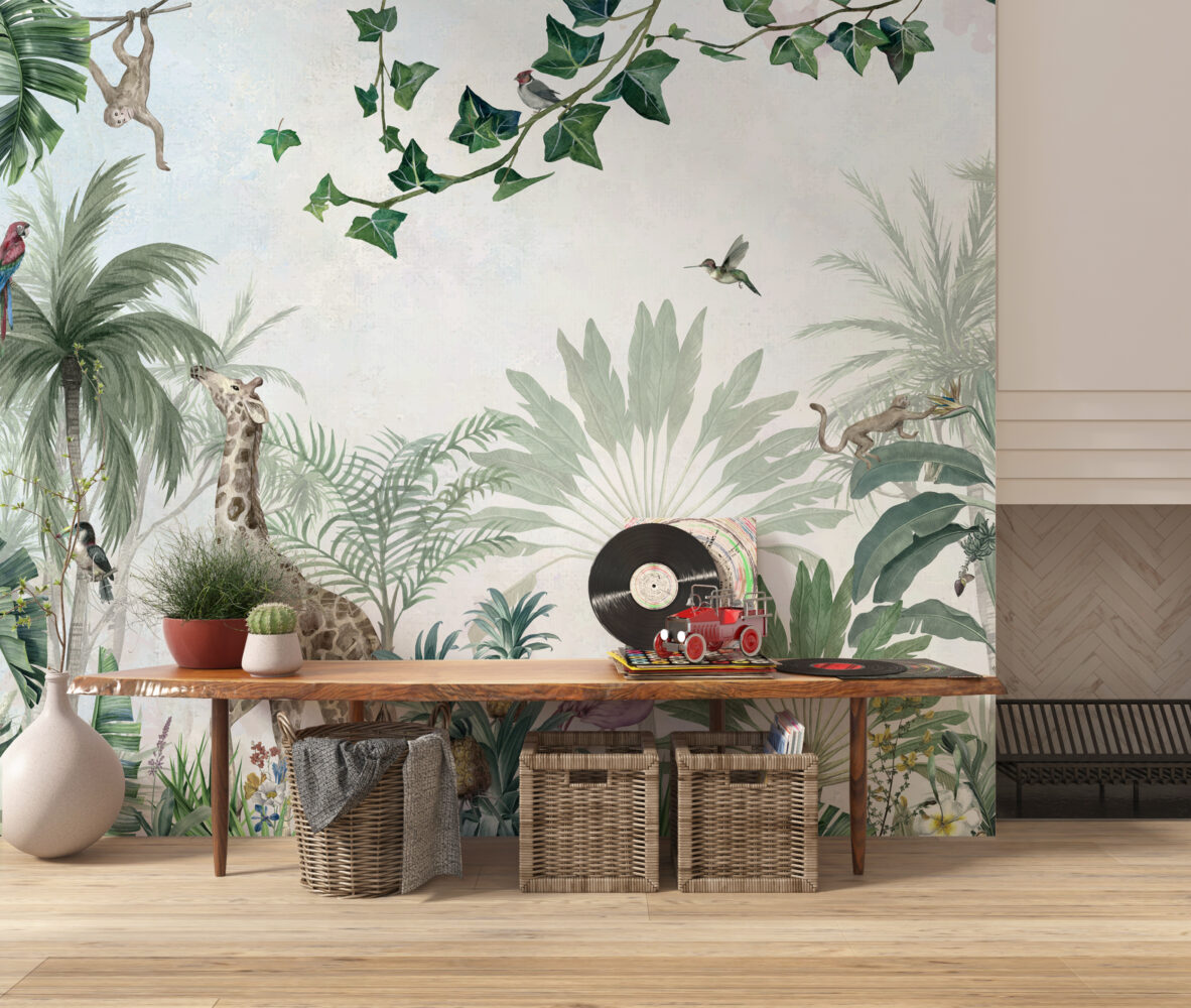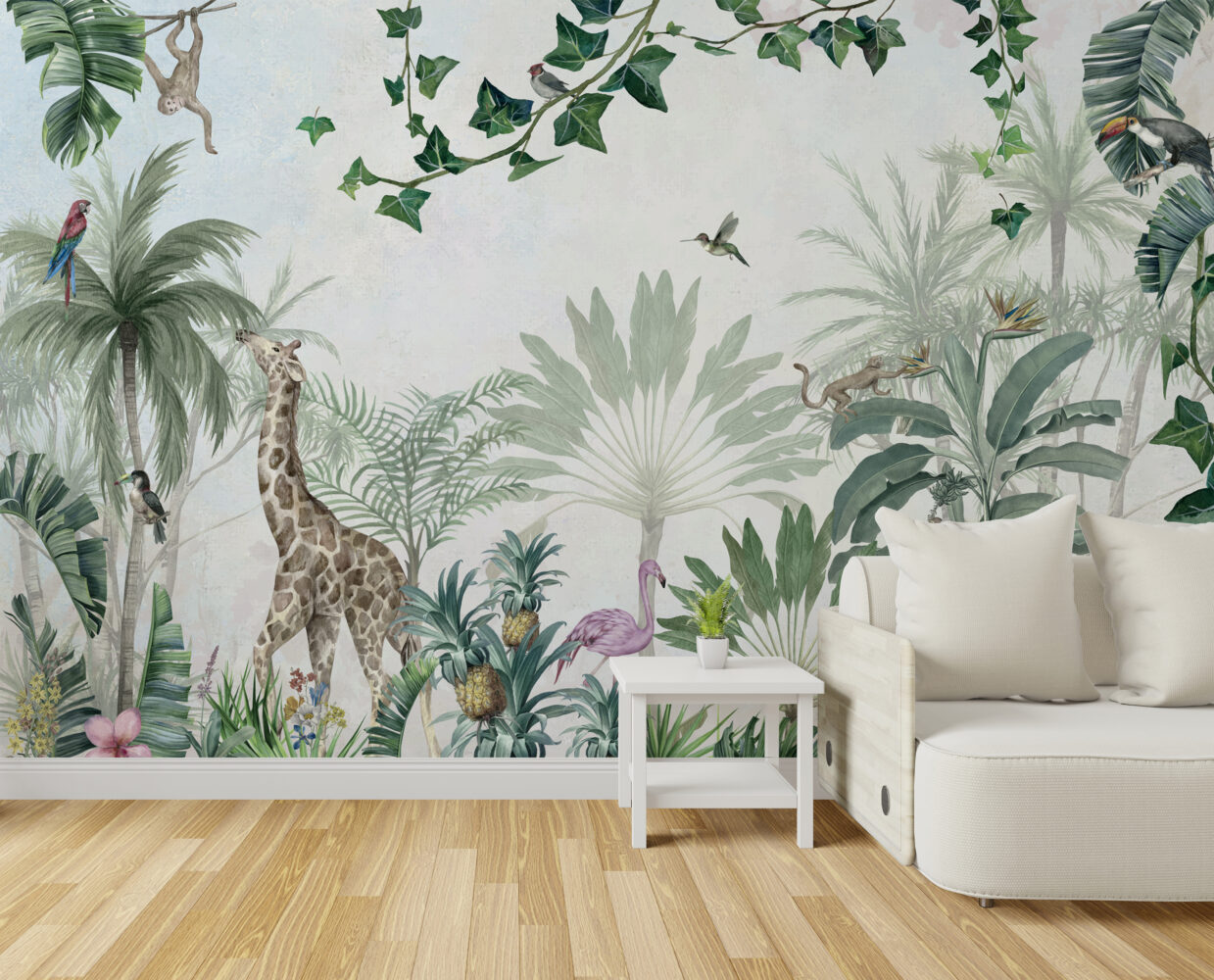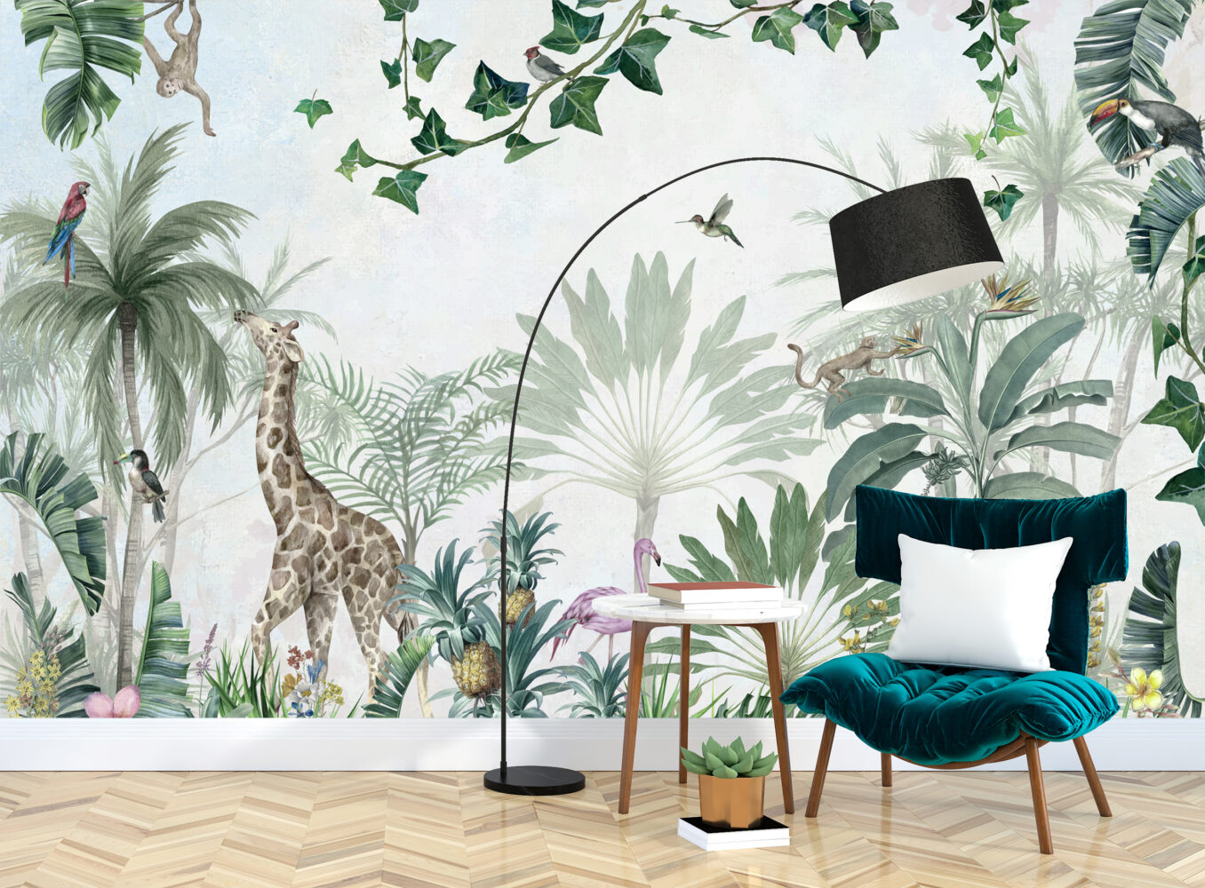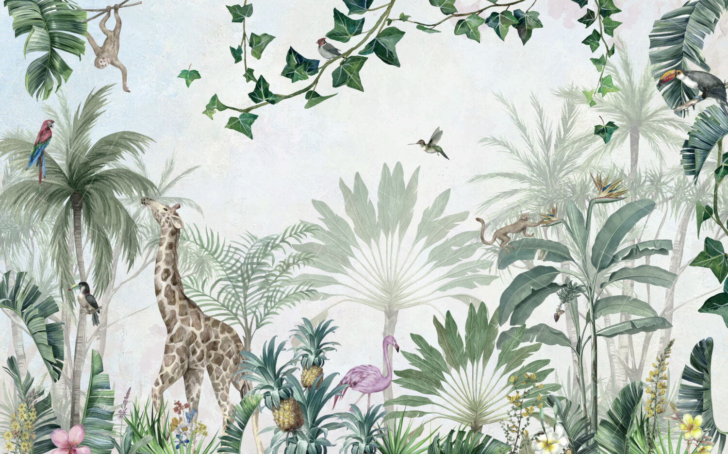 Tropikal Bahçedeki Hayvanlar Duvar Kağıdı üretimi, uygulanmasını isteyeceğiniz boyut ve konumuna uygun olarak talepleriniz doğrultusunda size özel imal edilir.