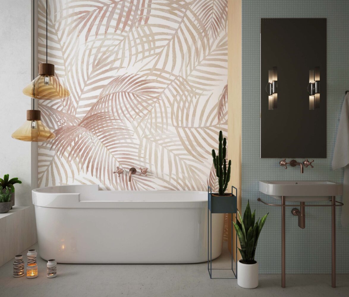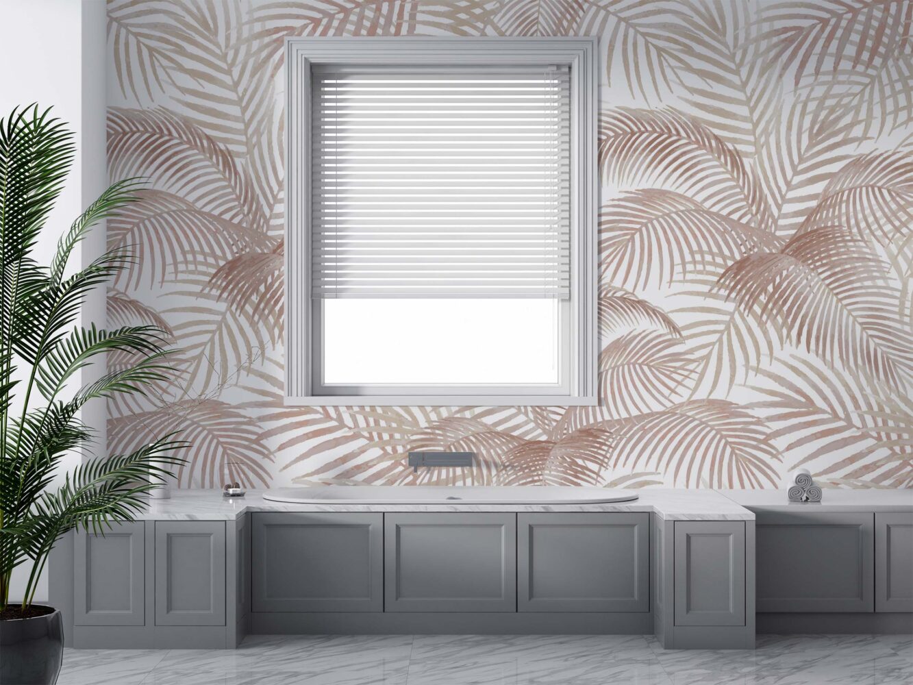 Tropikal Bej Palmiye Yaprakları Duvar Kağıdı üretimi, uygulanmasını isteyeceğiniz boyut ve konumuna uygun olarak talepleriniz doğrultusunda size özel imal edilir.