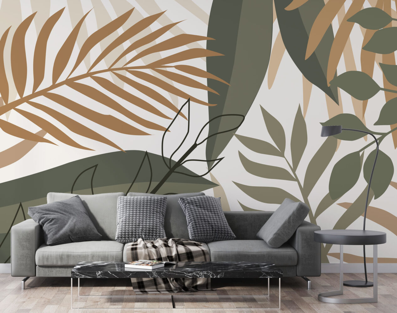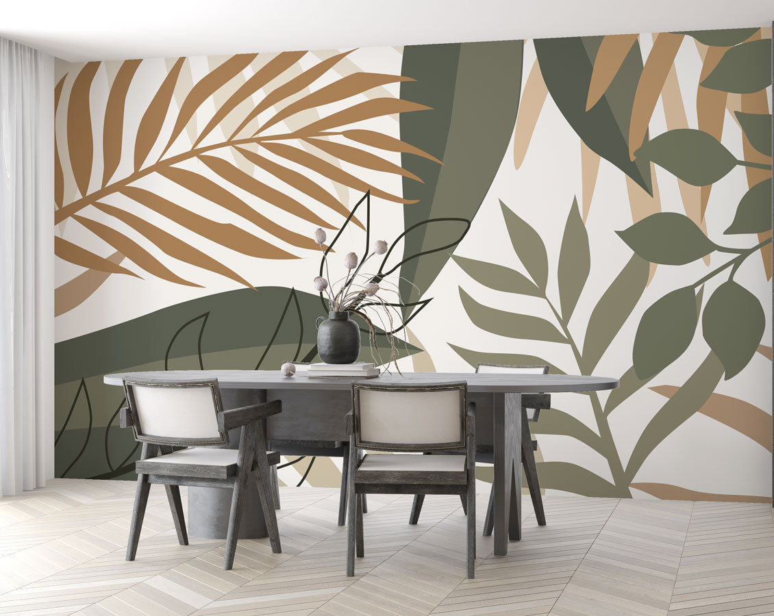 Tropikal Büyük Yapraklar Boho Duvar Kağıdı üretimi, uygulanmasını isteyeceğiniz boyut ve konumuna uygun olarak talepleriniz doğrultusunda size özel imal edilir.
