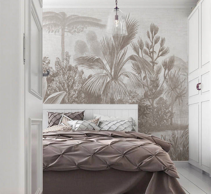 Tropikal Desenli Eskitmeli 3D Duvar Kağıdı