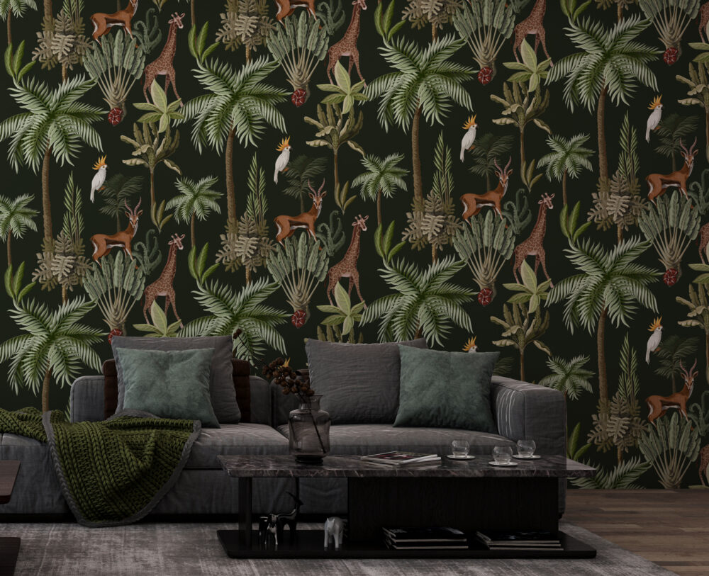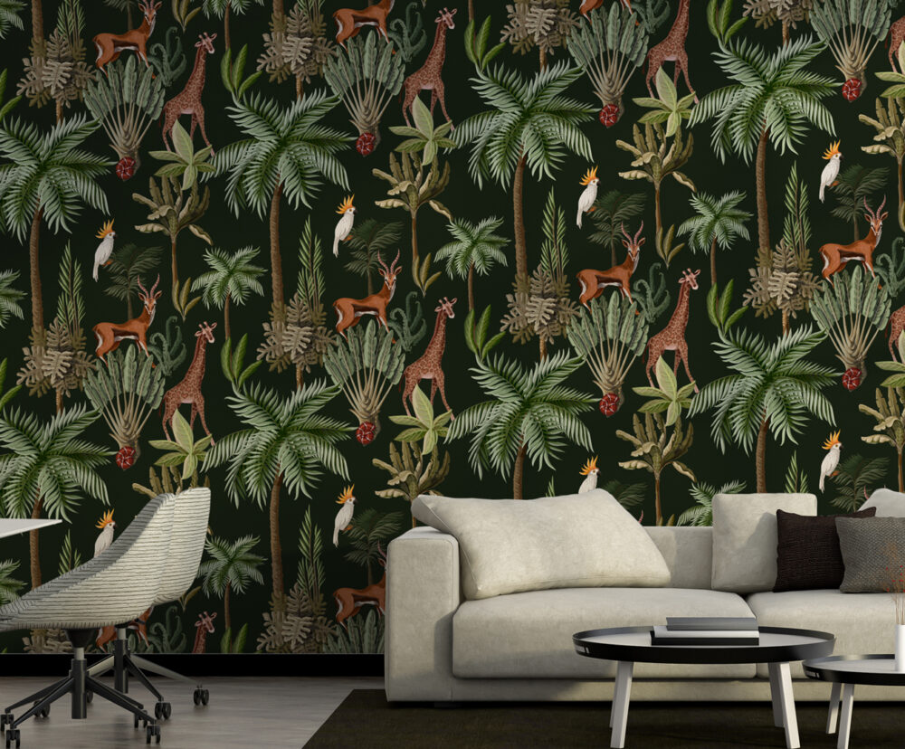 Tropikal Desenli Zürafa ve Kuşlu 3D Duvar Kağıdı üretimi, uygulanmasını isteyeceğiniz boyut ve konumuna uygun olarak talepleriniz doğrultusunda size özel imal edilir.