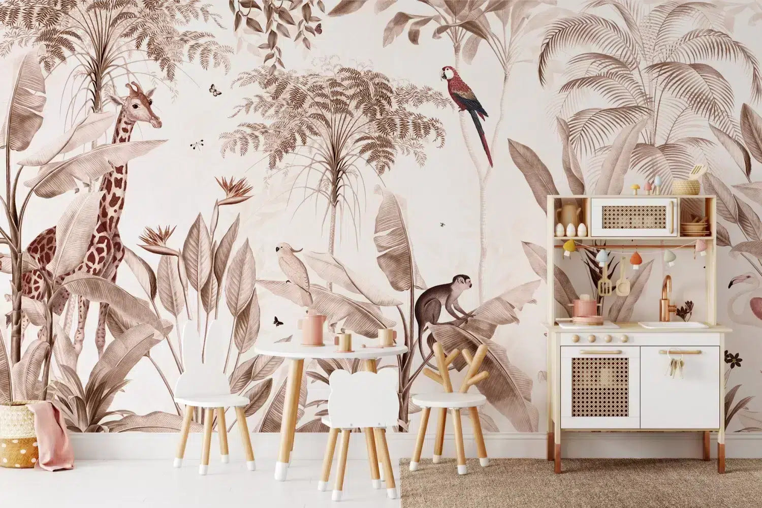 Tropikal Hayvanlar Sepya Tonlarında Duvar Kağıdı üretimi, uygulanmasını isteyeceğiniz boyut ve konumuna uygun olarak talepleriniz doğrultusunda size özel imal edilir.
