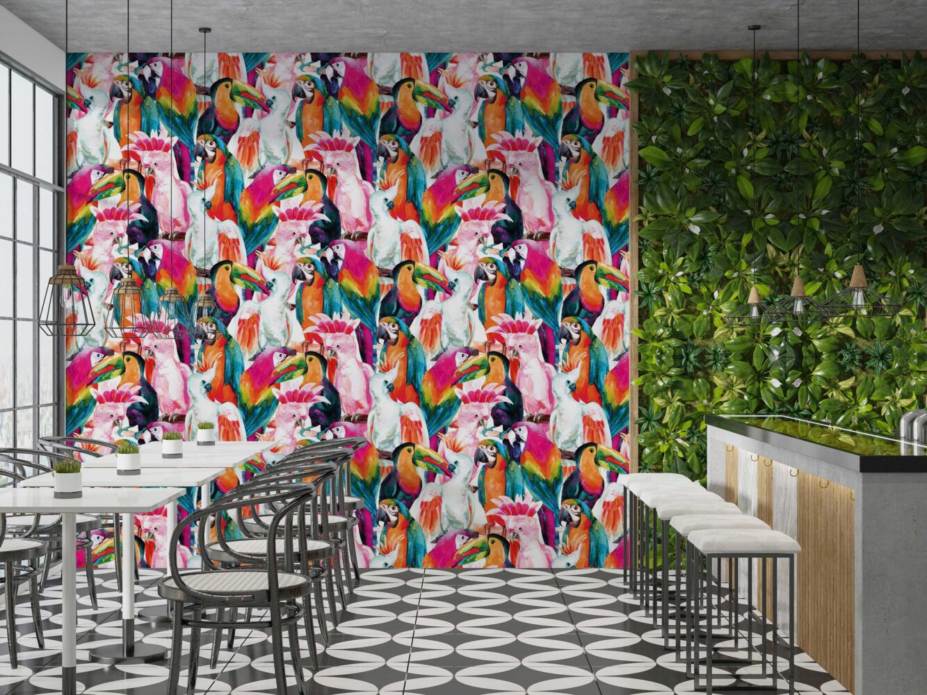 Tropikal Kuş Çeşitleri Duvar Kağıdı üretimi, uygulanmasını isteyeceğiniz boyut ve konumuna uygun olarak talepleriniz doğrultusunda size özel imal edilir.
