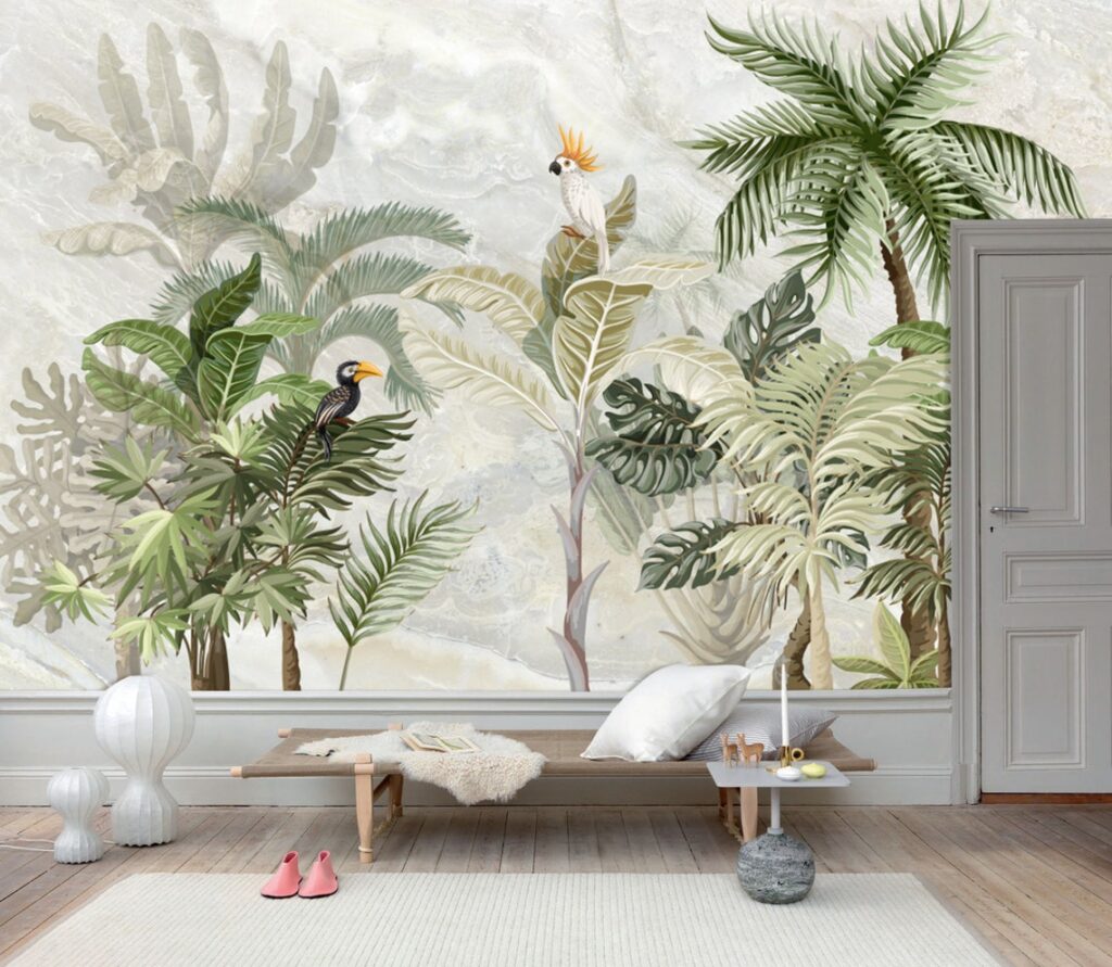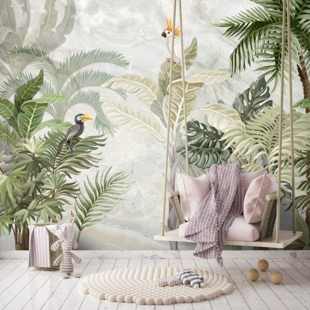 Tropikal Kuşlu 3D Duvar Kağıdı