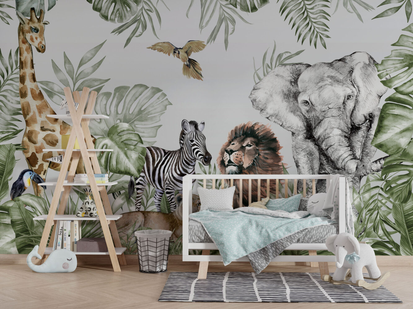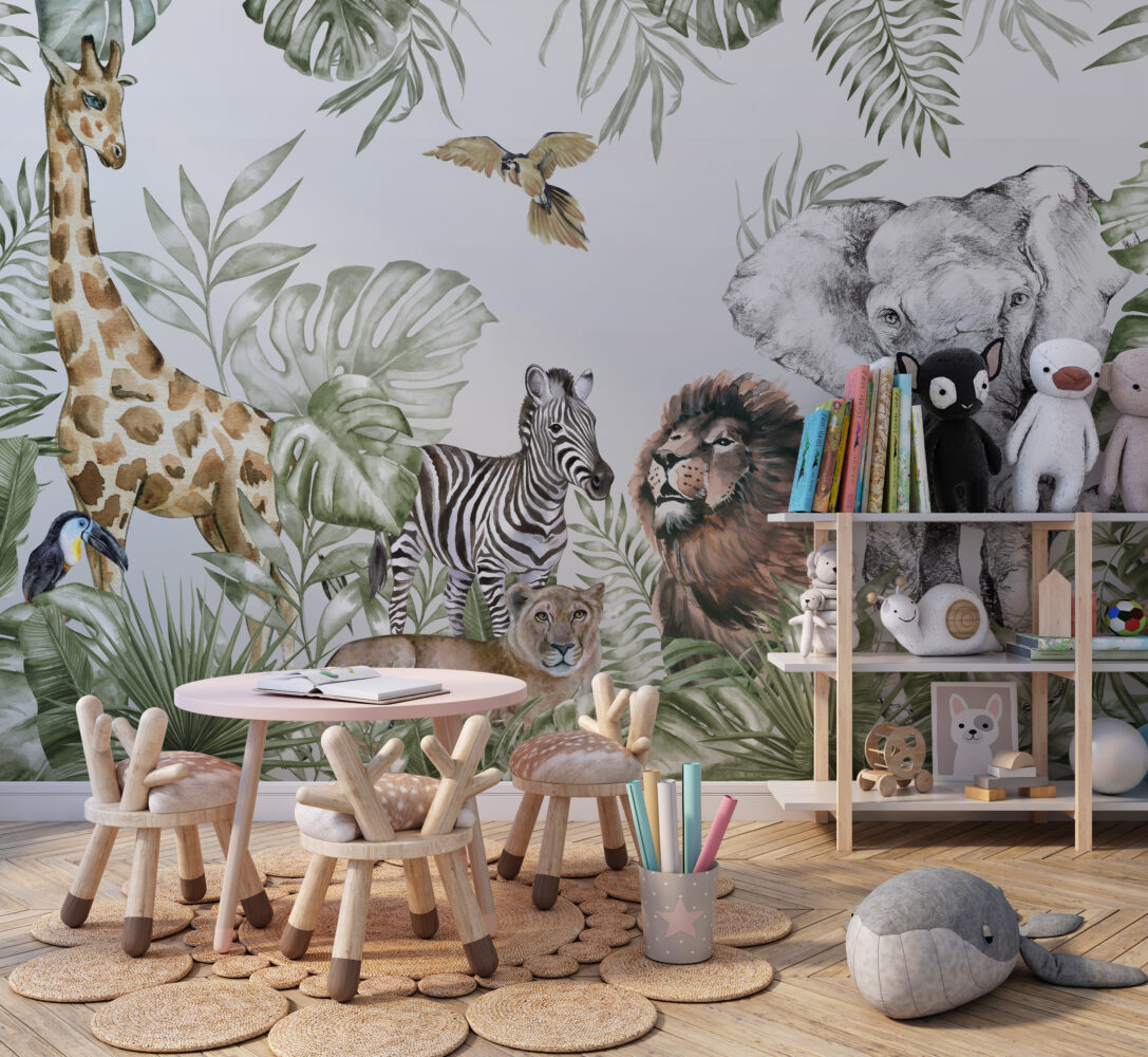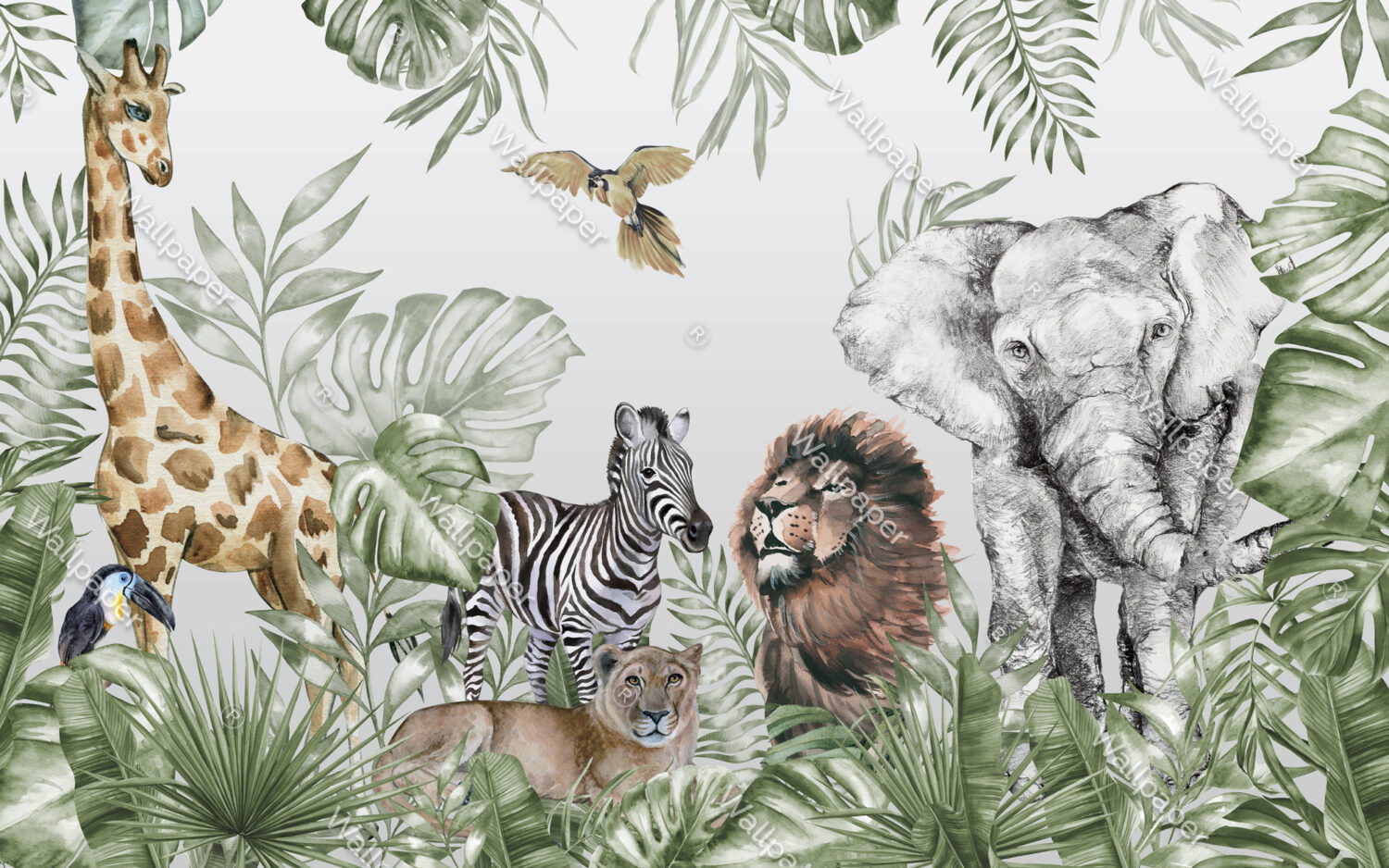 Tropikal Orman Ve Safari Hayvanları Duvar Kağıdı üretimi, uygulanmasını isteyeceğiniz boyut ve konumuna uygun olarak talepleriniz doğrultusunda size özel imal edilir.