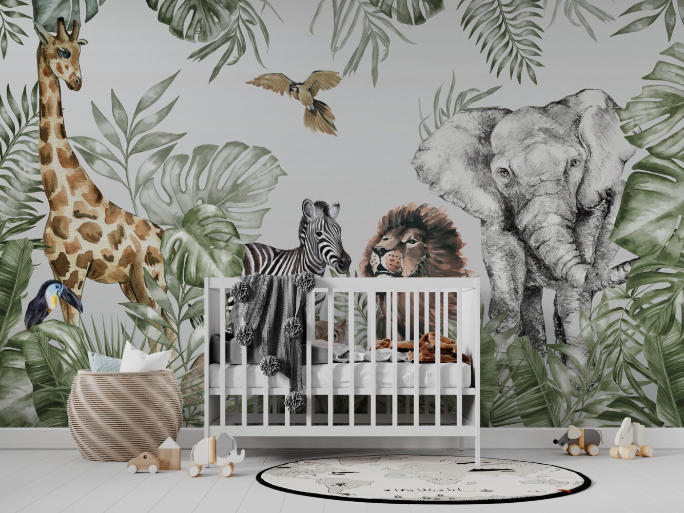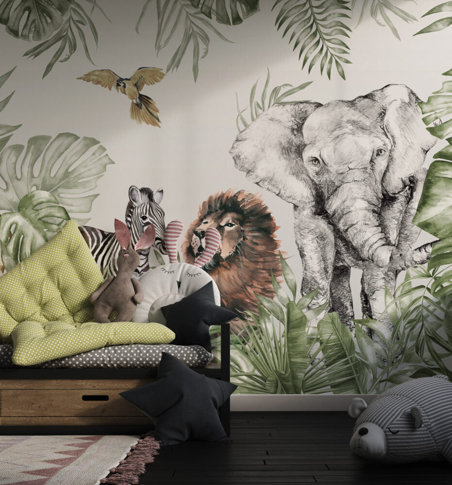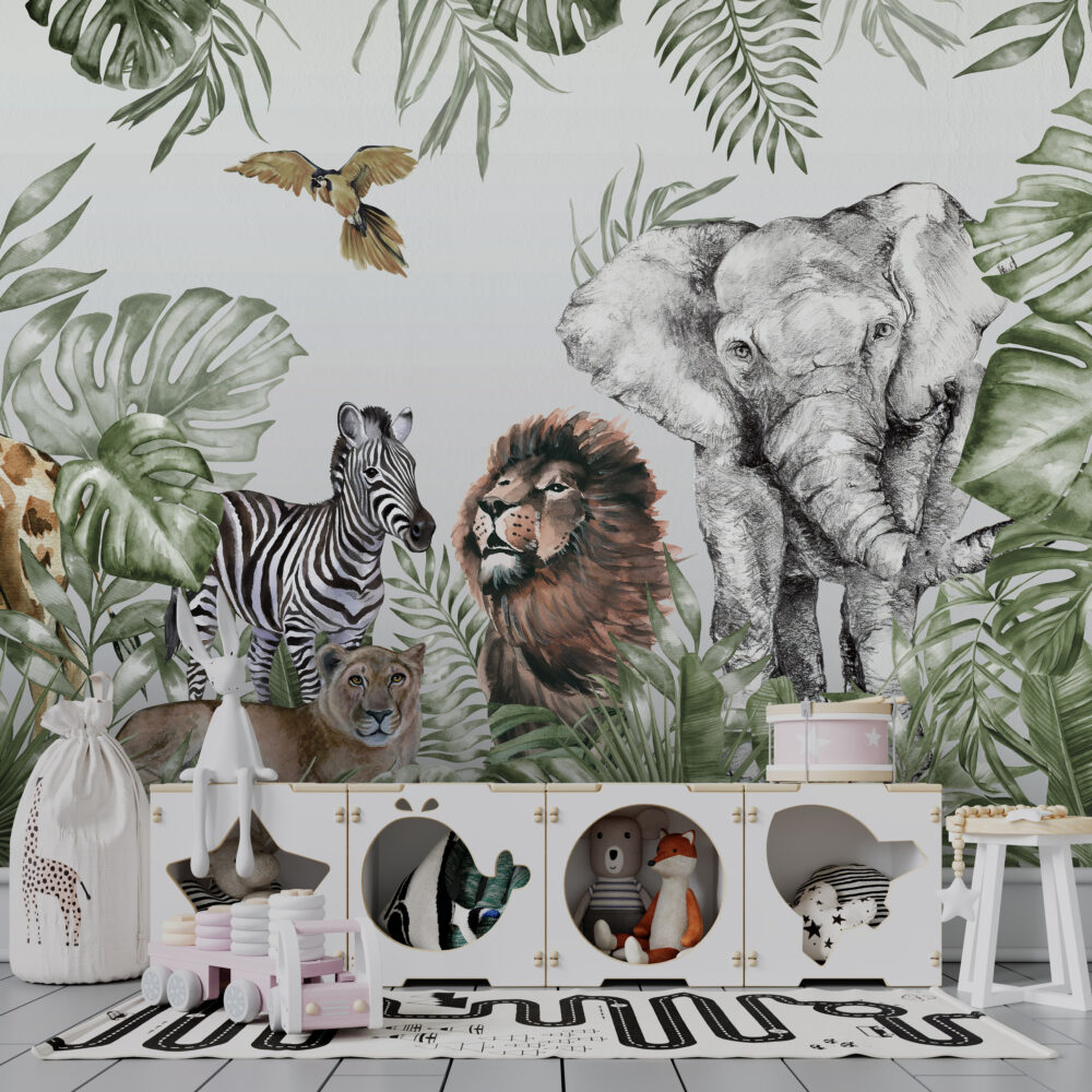 Tropikal Orman Ve Safari Hayvanları Duvar Kağıdı üretimi, uygulanmasını isteyeceğiniz boyut ve konumuna uygun olarak talepleriniz doğrultusunda size özel imal edilir.