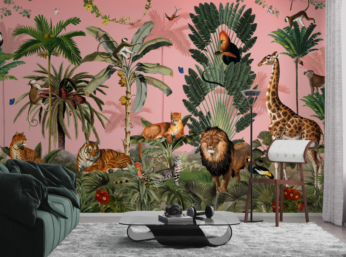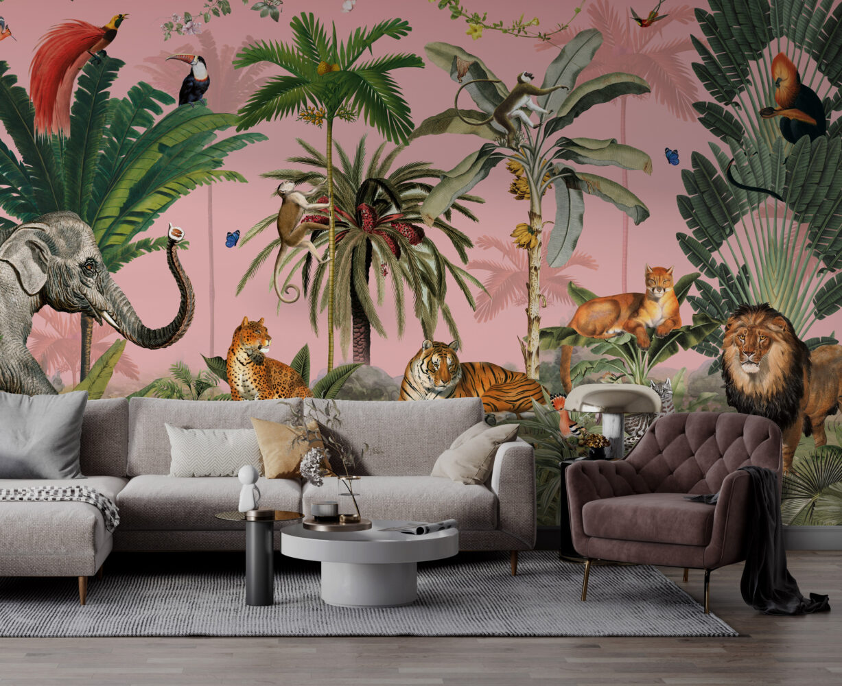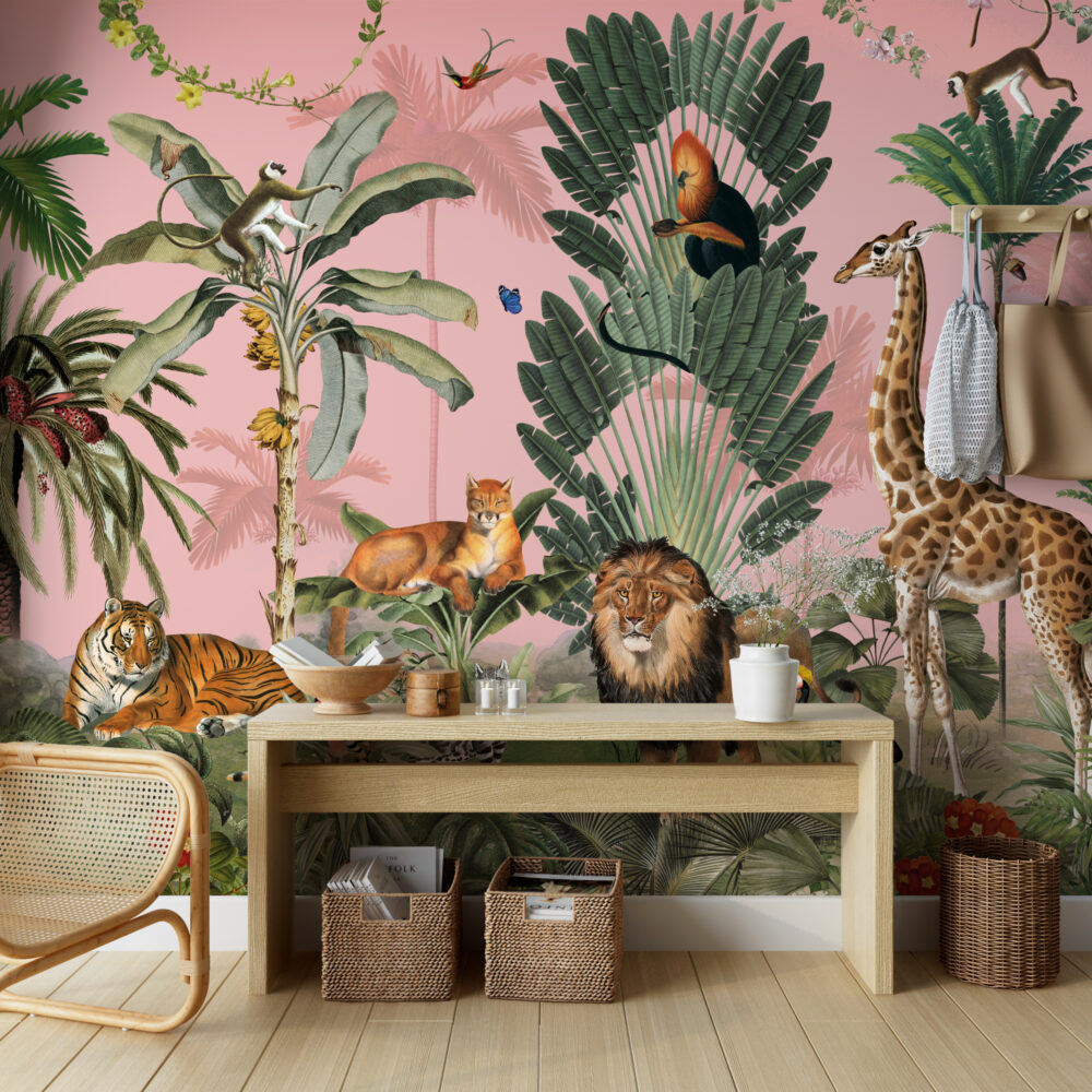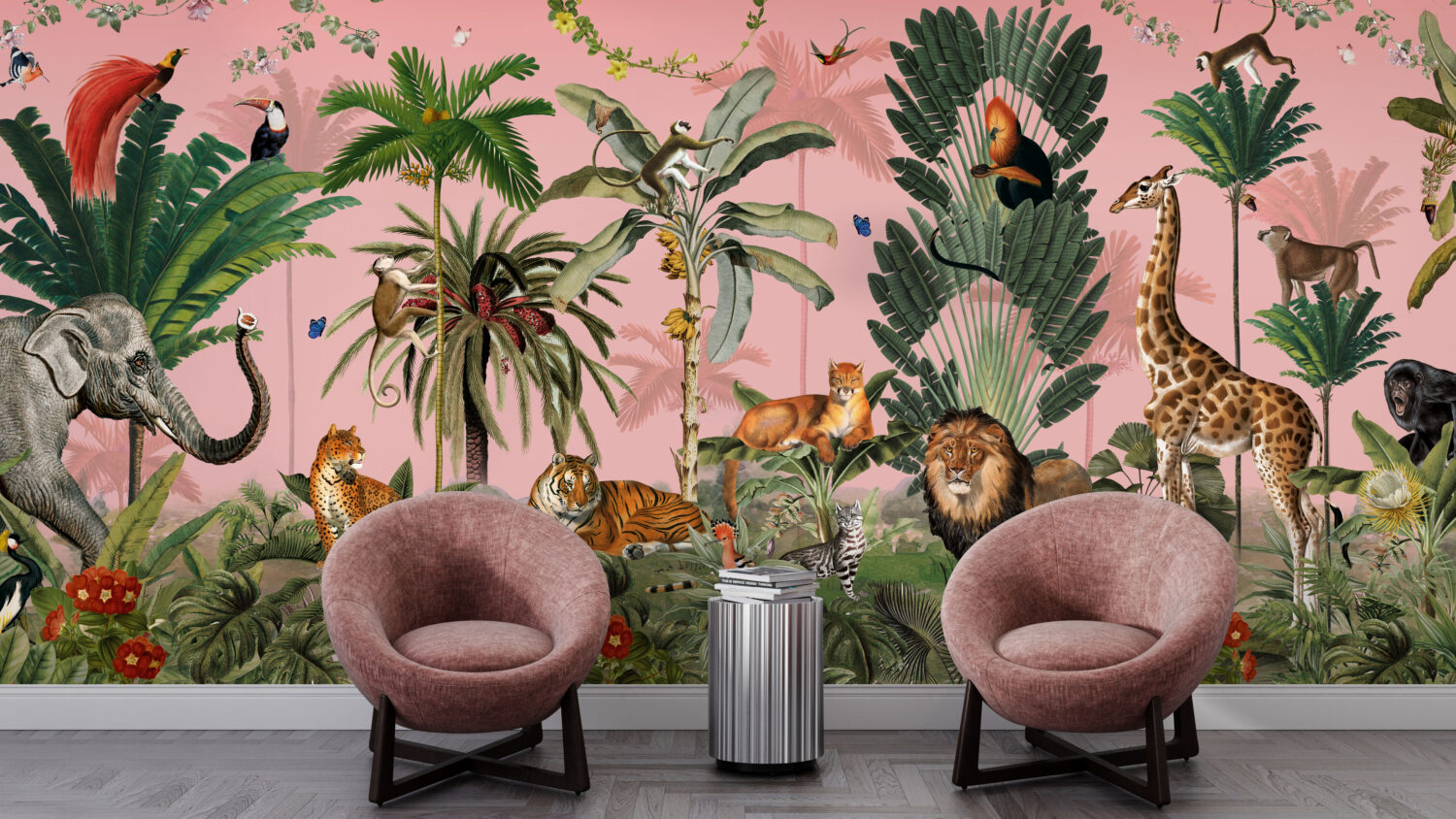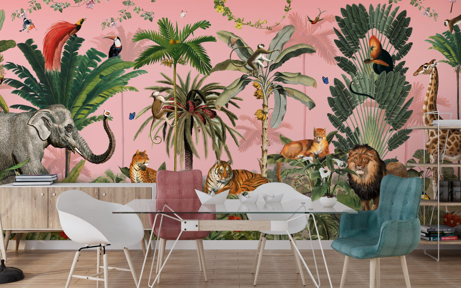 Tropikal Ormanda Hayvanlar Alemi Duvar Kağıdı üretimi, uygulanmasını isteyeceğiniz boyut ve konumuna uygun olarak talepleriniz doğrultusunda size özel imal edilir.