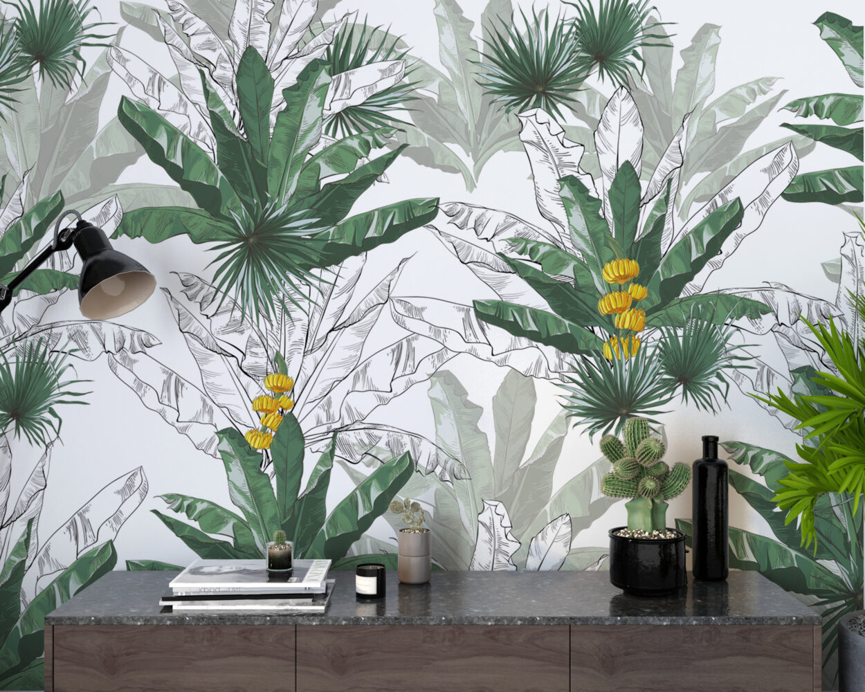 Tropikal Ormanda Muz Ağaçları 3D Duvar Kağıdı üretimi, uygulanmasını isteyeceğiniz boyut ve konumuna uygun olarak talepleriniz doğrultusunda size özel imal edilir.