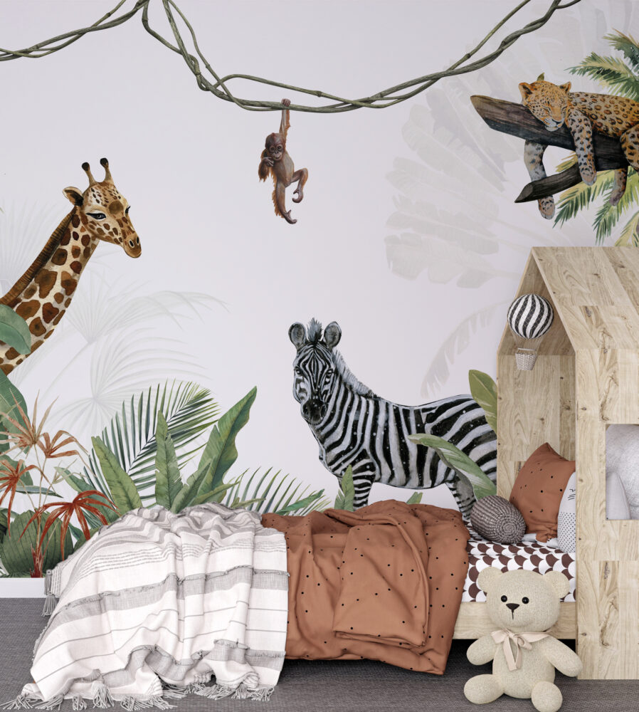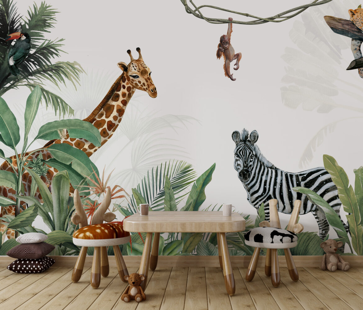 Tropikal Ormanda Uykucu Leopar ve Arkadaşları Duvar Kağıdı üretimi, uygulanmasını isteyeceğiniz boyut ve konumuna uygun olarak talepleriniz doğrultusunda size özel imal edilir.