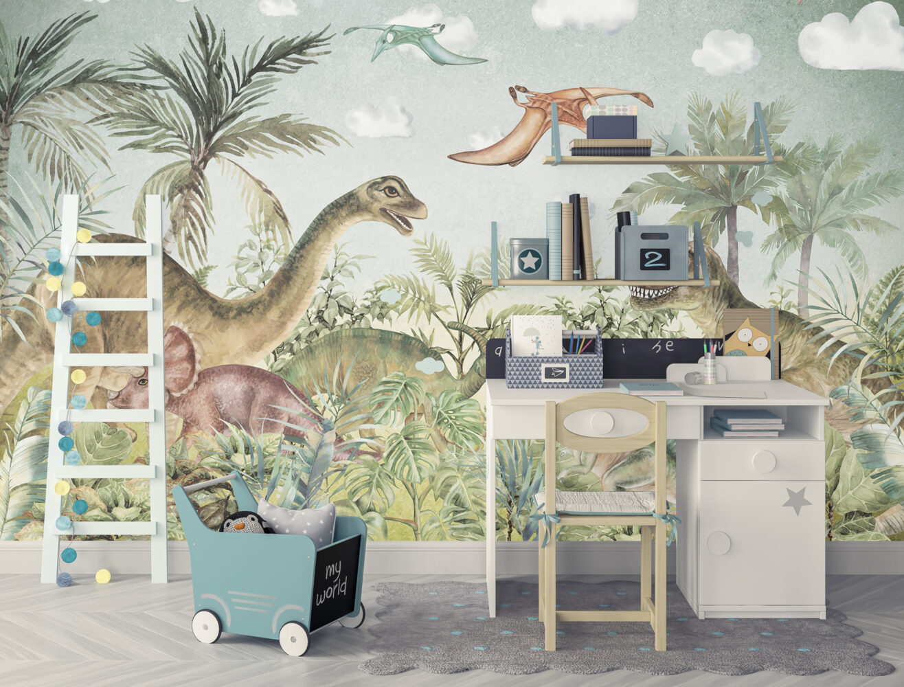 Tropikal Ormandaki Dinazorlar Duvar Kağıdı üretimi, uygulanmasını isteyeceğiniz boyut ve konumuna uygun olarak talepleriniz doğrultusunda size özel imal edilir.
