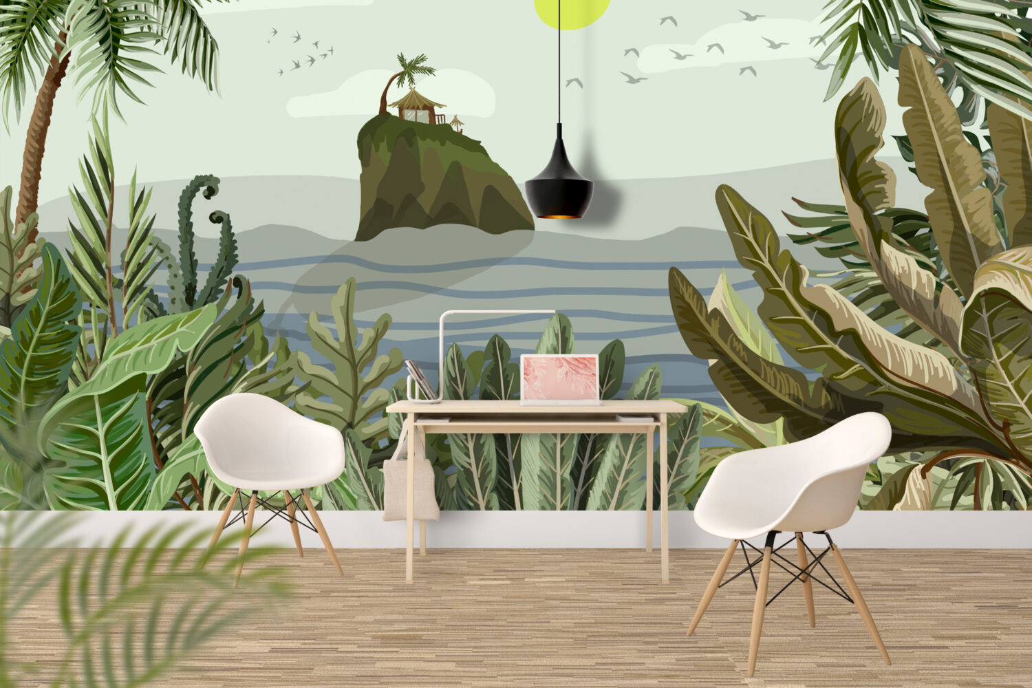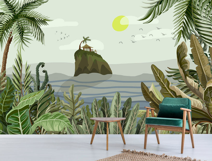 Tropikal Ormandan Gözüken Okyanustaki Ada Duvar Kağıdı Duvar Kağıdı Ürün Bilgisi