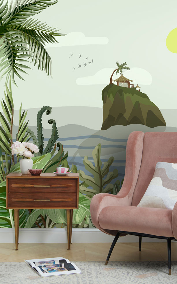 Tropikal Ormandan Gözüken Okyanustaki Ada Duvar Kağıdı üretimi, uygulanmasını isteyeceğiniz boyut ve konumuna uygun olarak talepleriniz doğrultusunda size özel imal edilir.