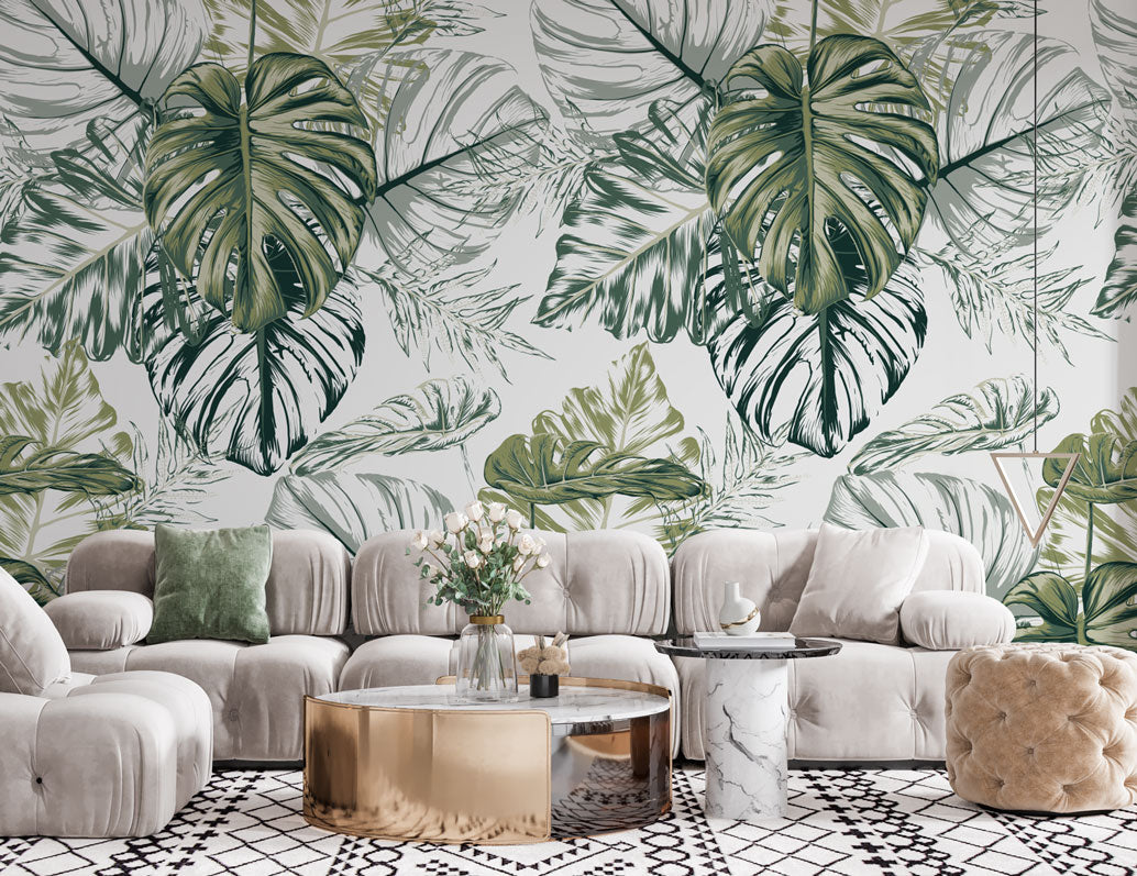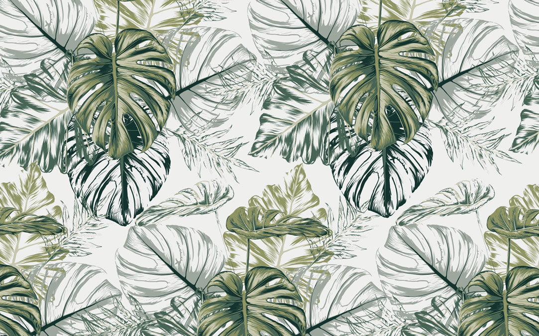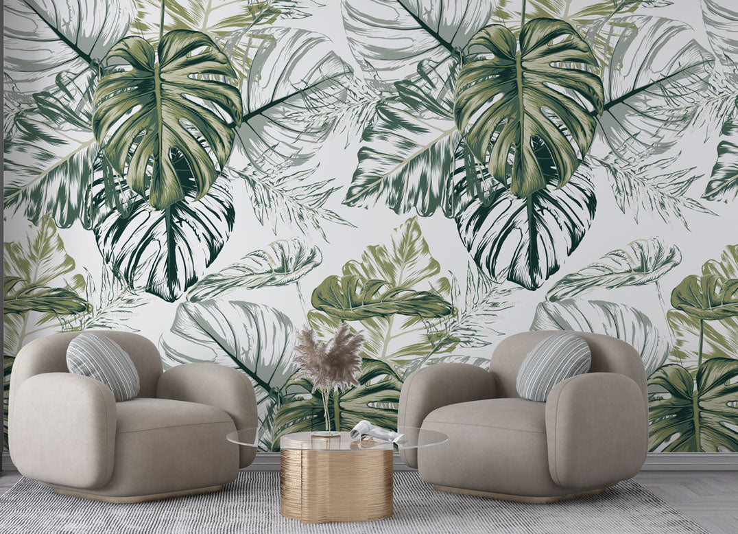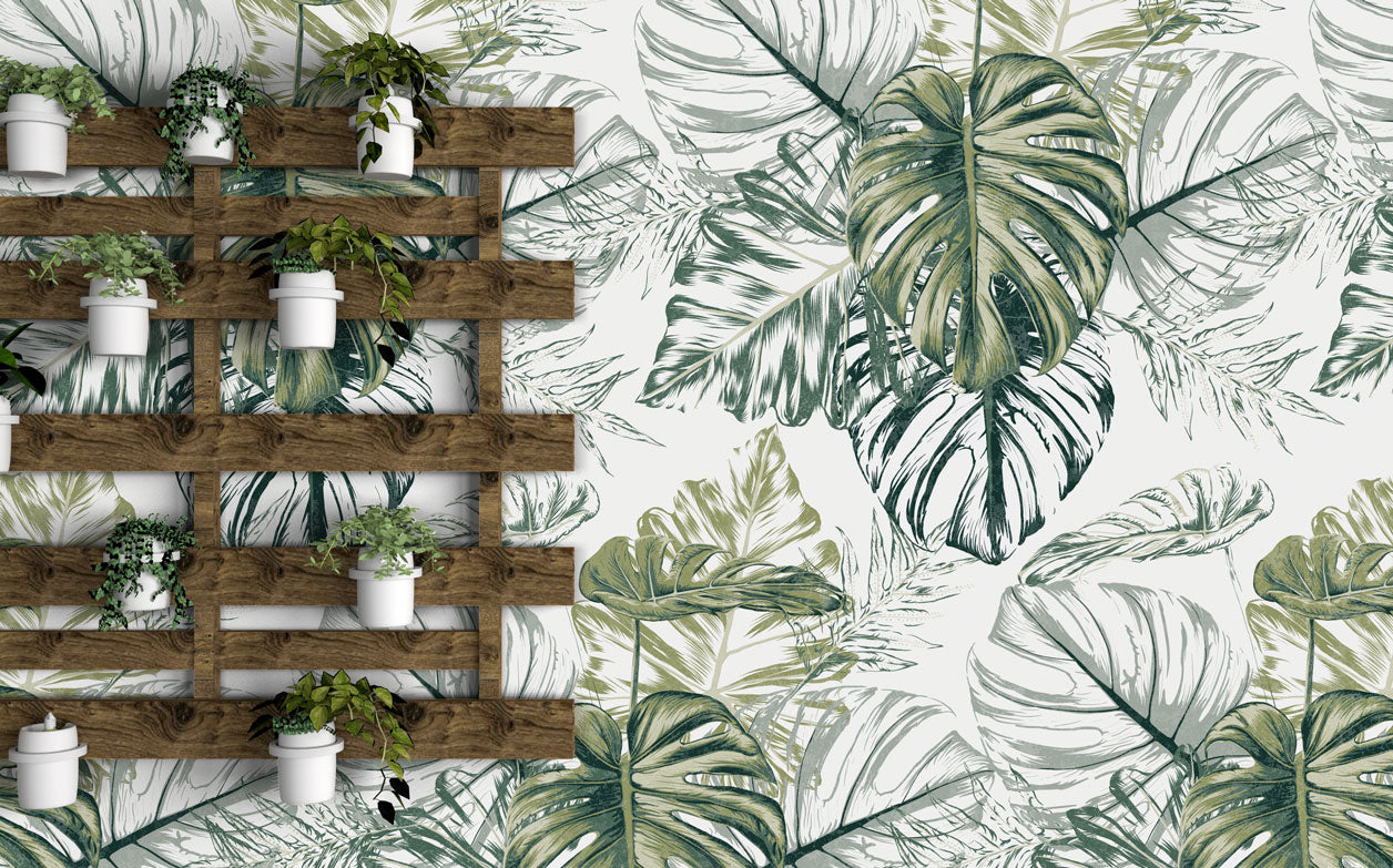 Tropikal Yaprak Çizimi Duvar Kağıdı üretimi, uygulanmasını isteyeceğiniz boyut ve konumuna uygun olarak talepleriniz doğrultusunda size özel imal edilir.