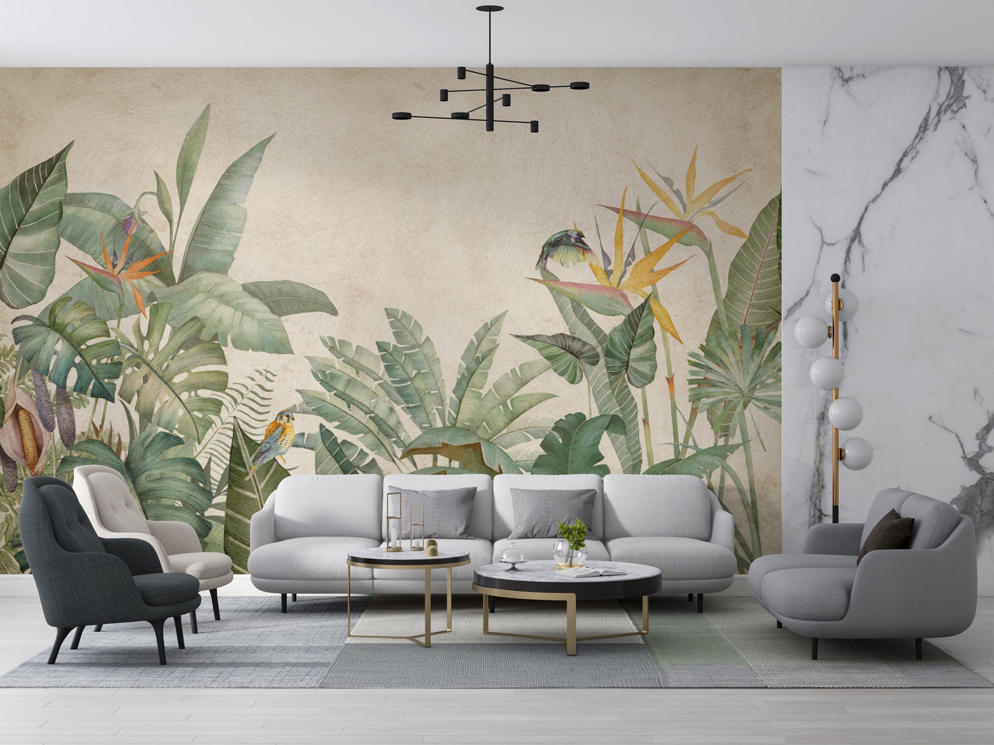 Tropikal Yapraklar ve Orman Çiçekleri Duvar Kağıdı Duvar Kağıdı Ürün Bilgisi