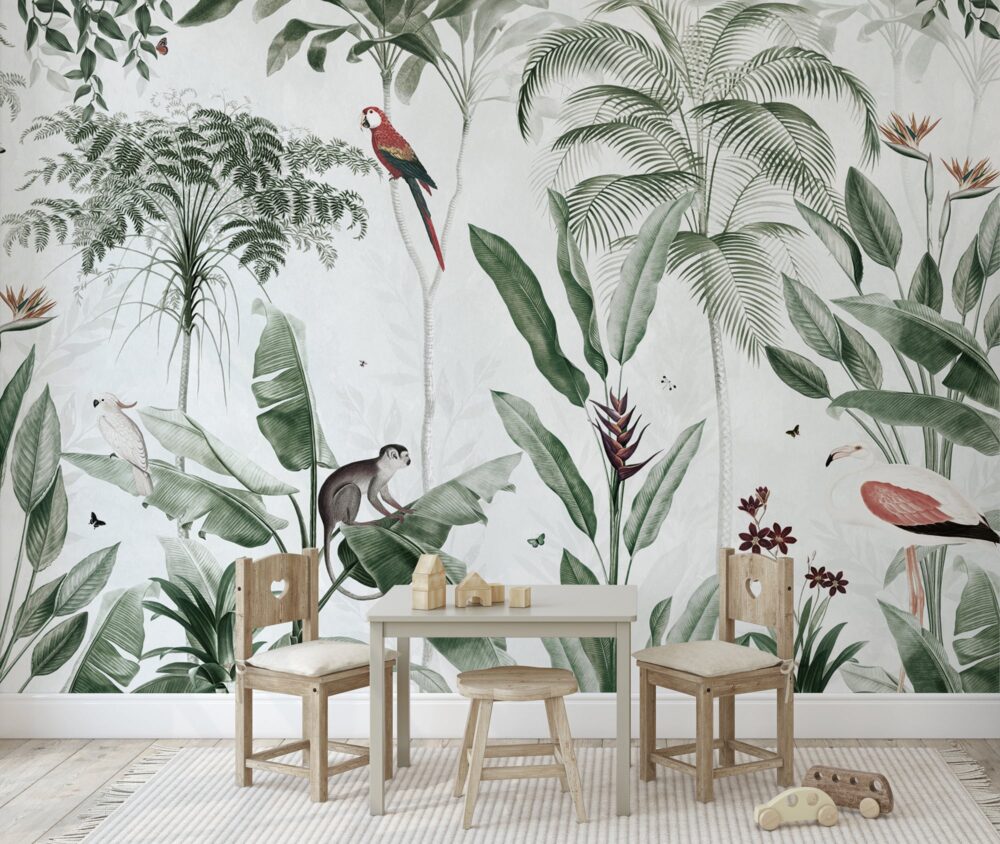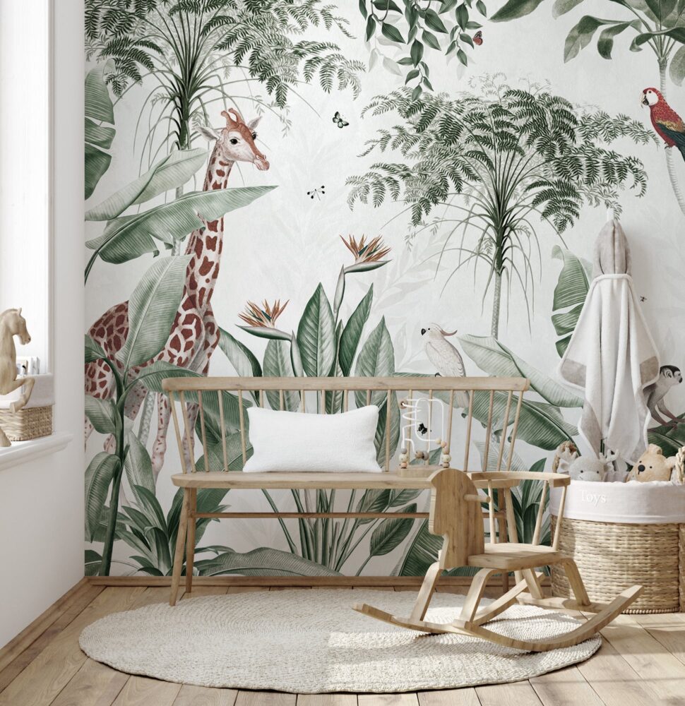 Tropikal Zürafalı Çocuk Odası Duvar Kağıdı