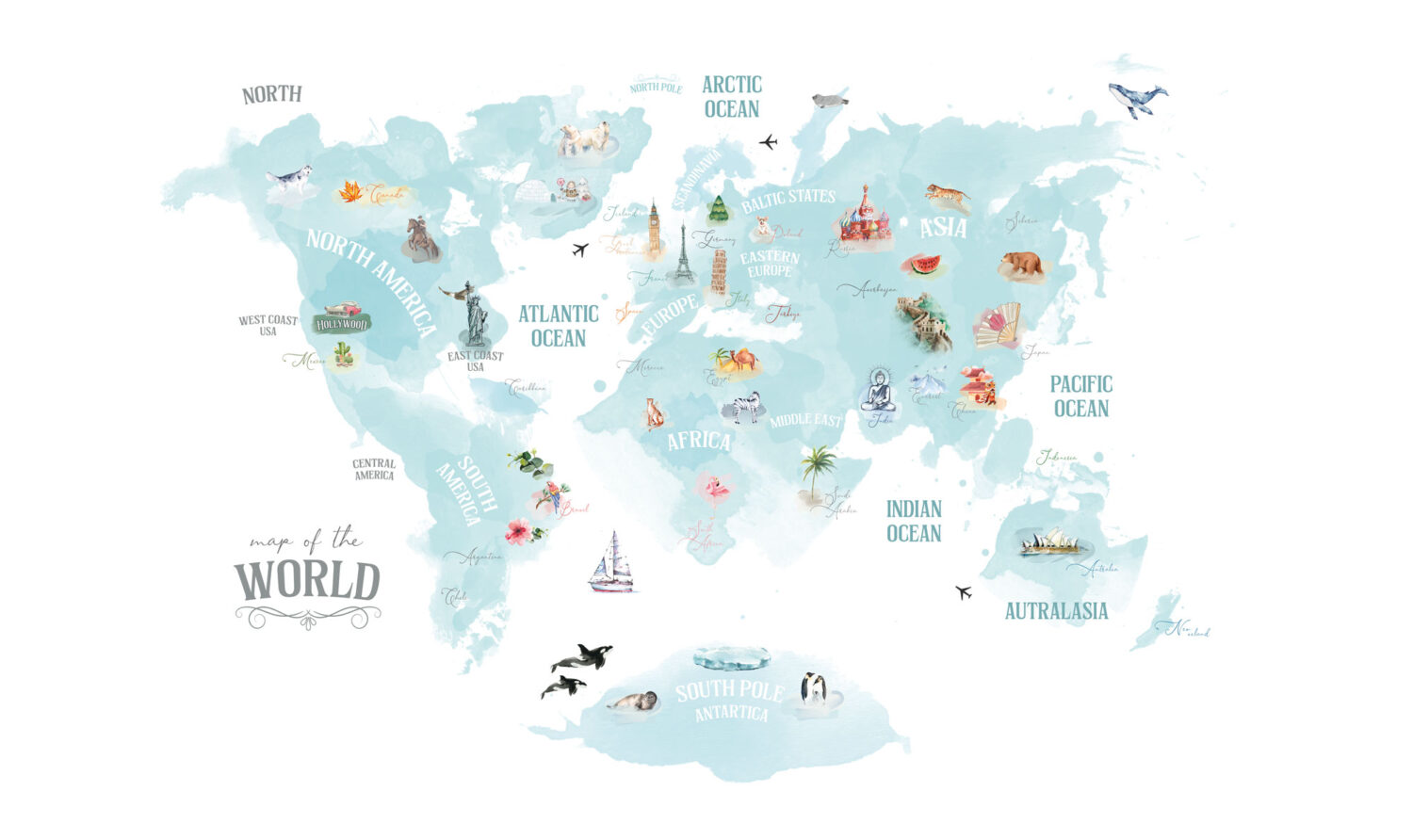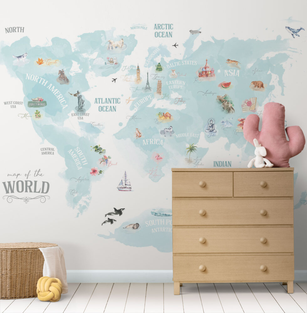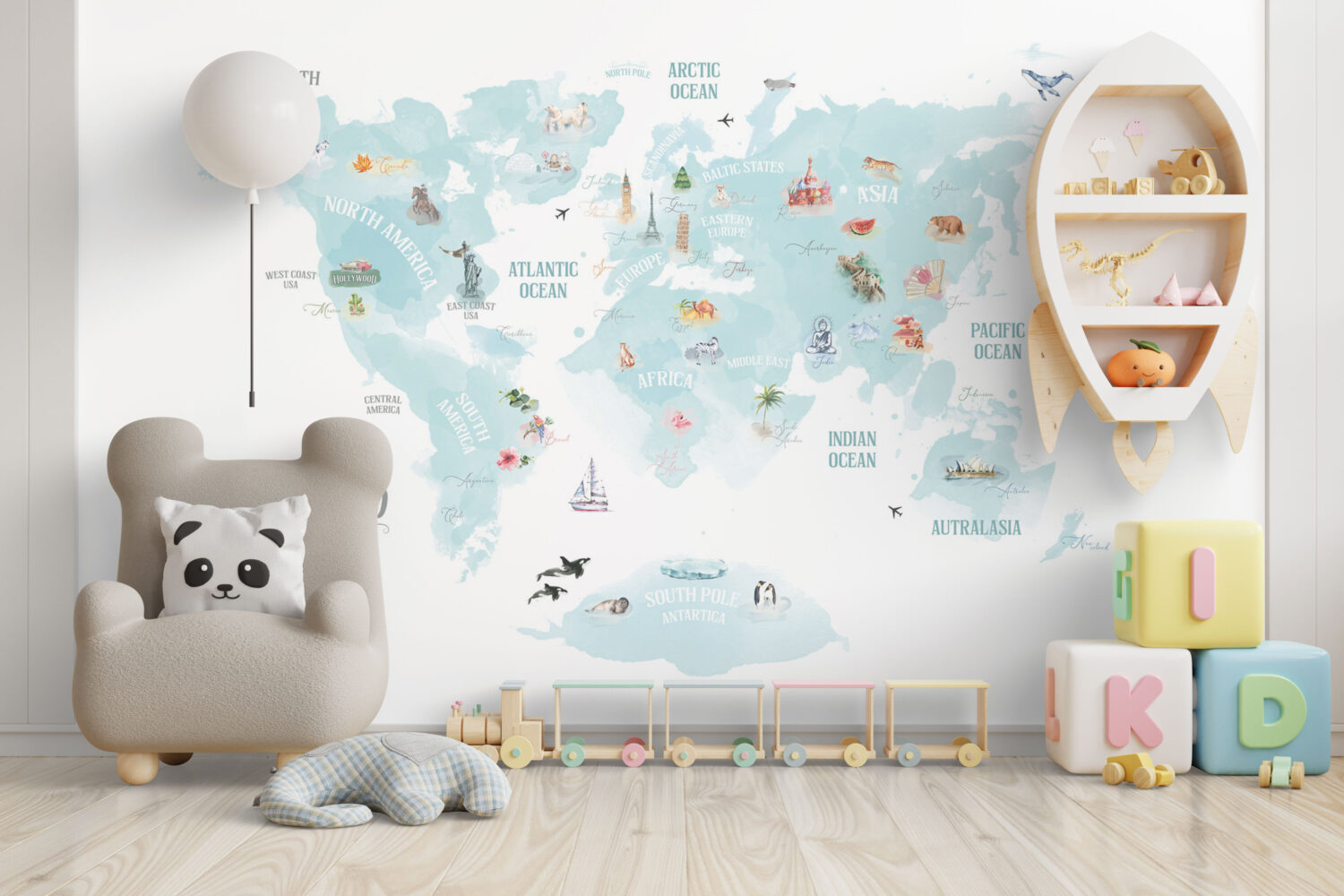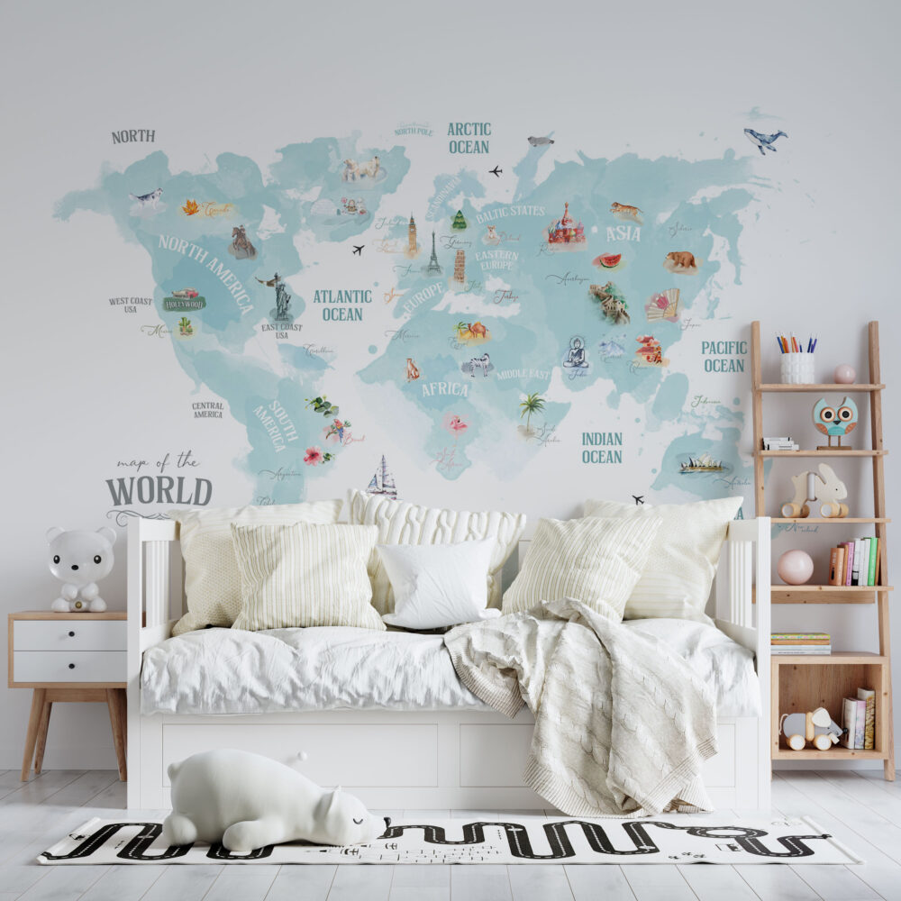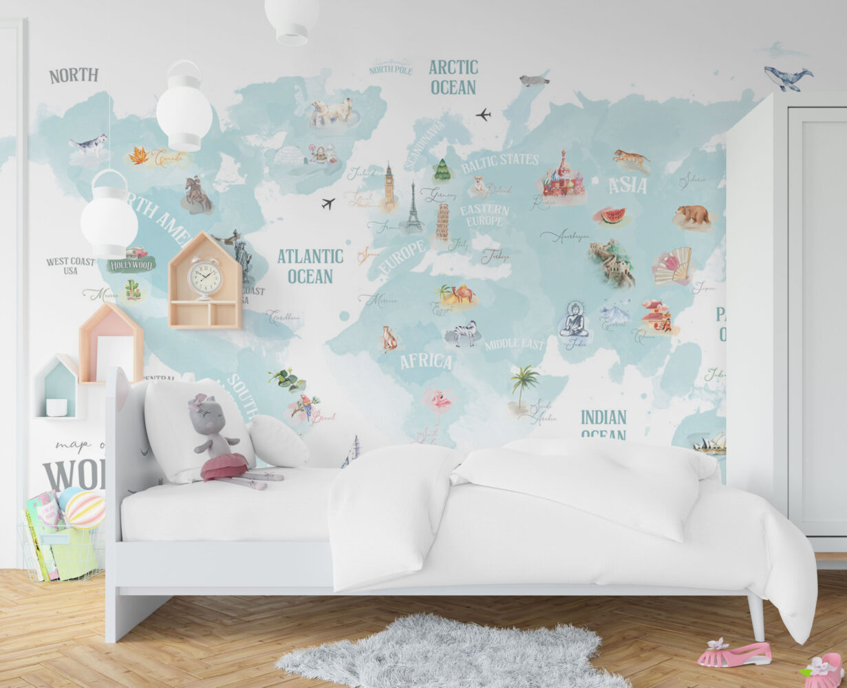 Turkuaz Hayvanlı Dünya Haritası Duvar Kağıdı | Duvar Kağıdı Marketi üretimi, uygulanmasını isteyeceğiniz boyut ve konumuna uygun olarak talepleriniz doğrultusunda size özel imal edilir.