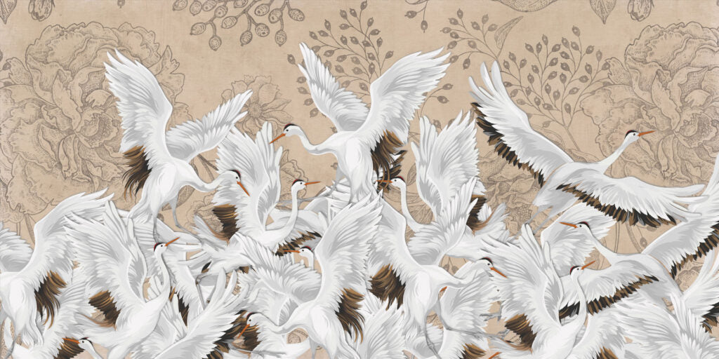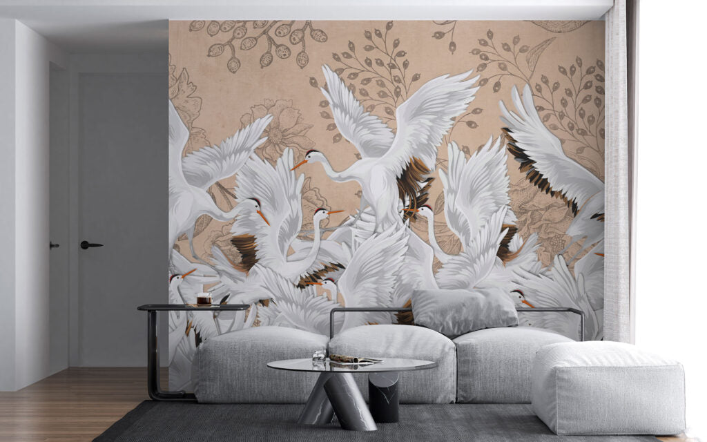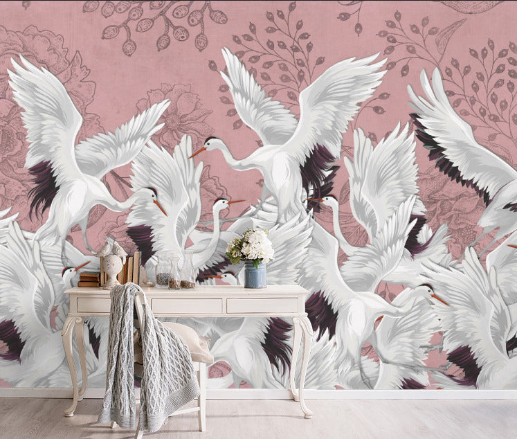 Turna Kuşu Desenli 3D Duvar Kağıdı