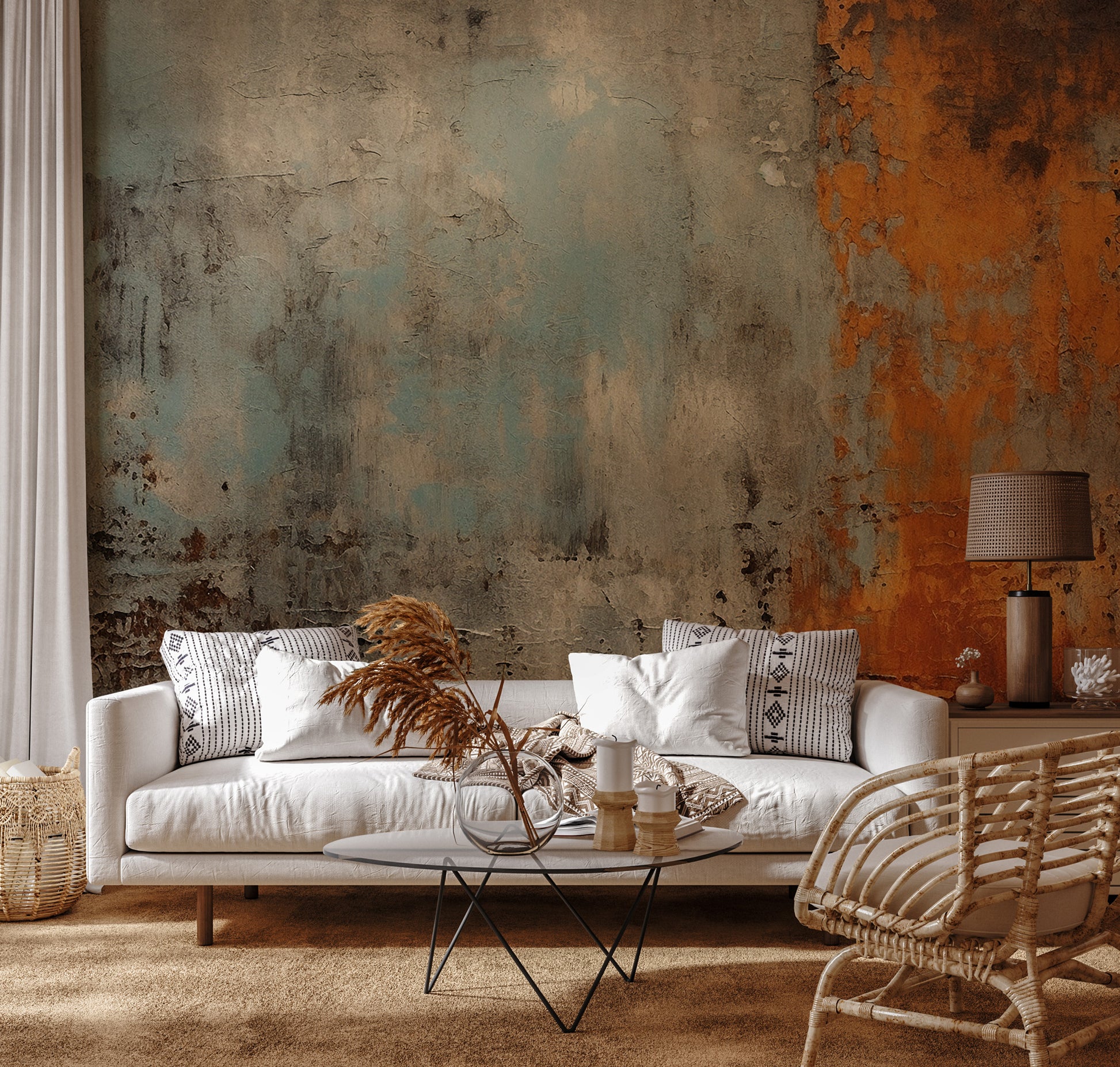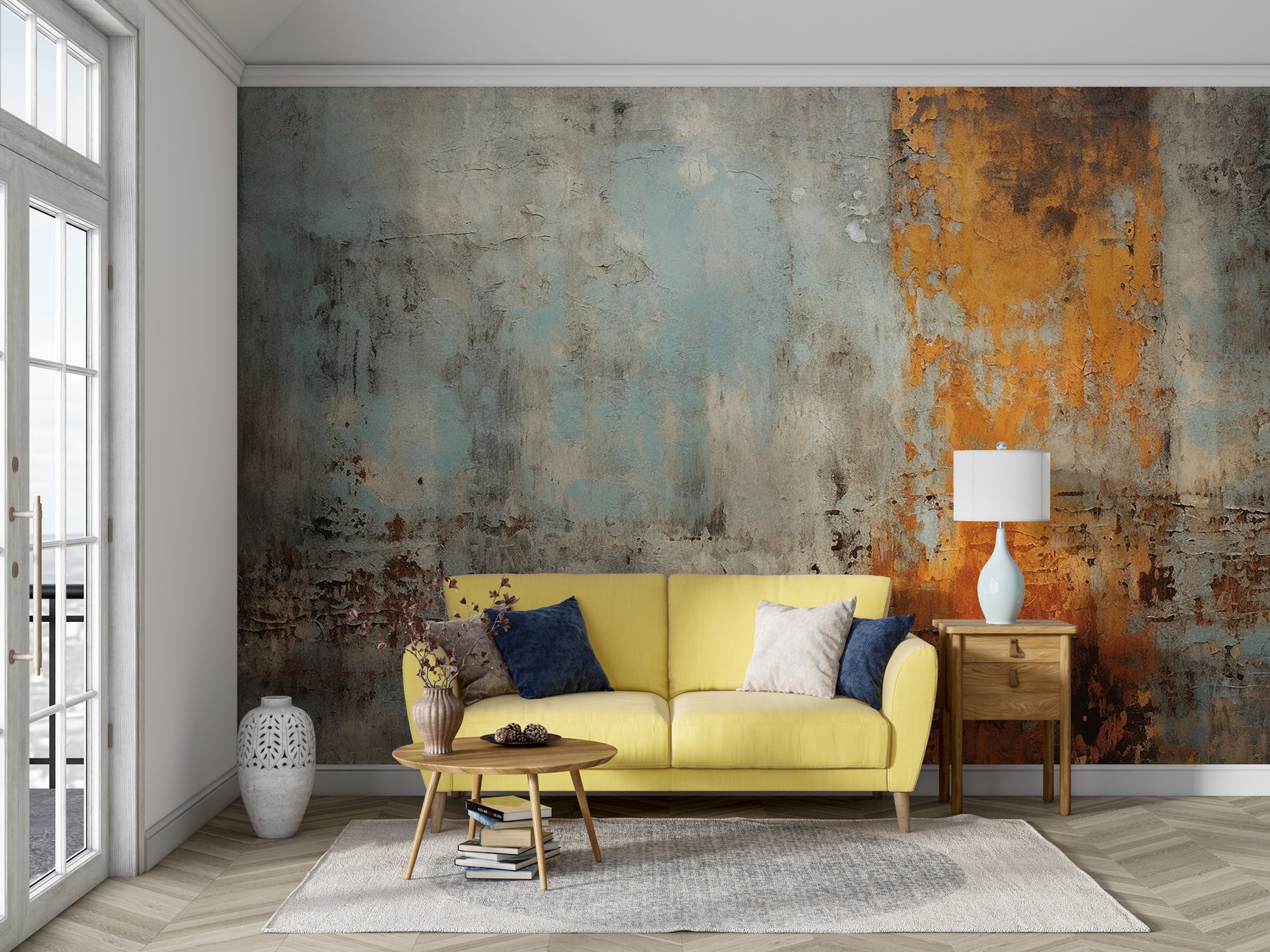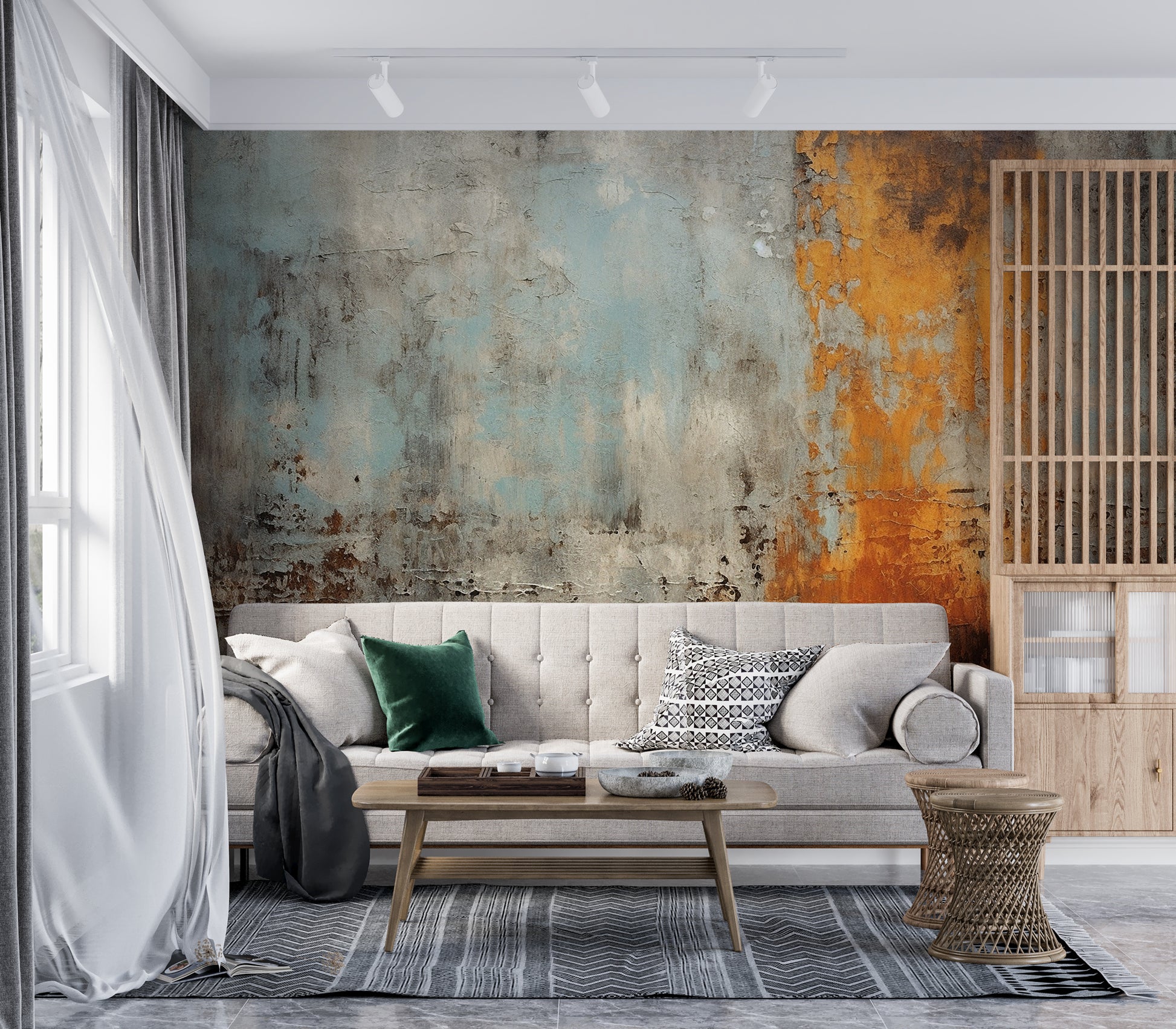 Turuncu ve Mavi Tonlarında Beton Duvar Kağıdı Duvar Kağıdı Ürün Bilgisi