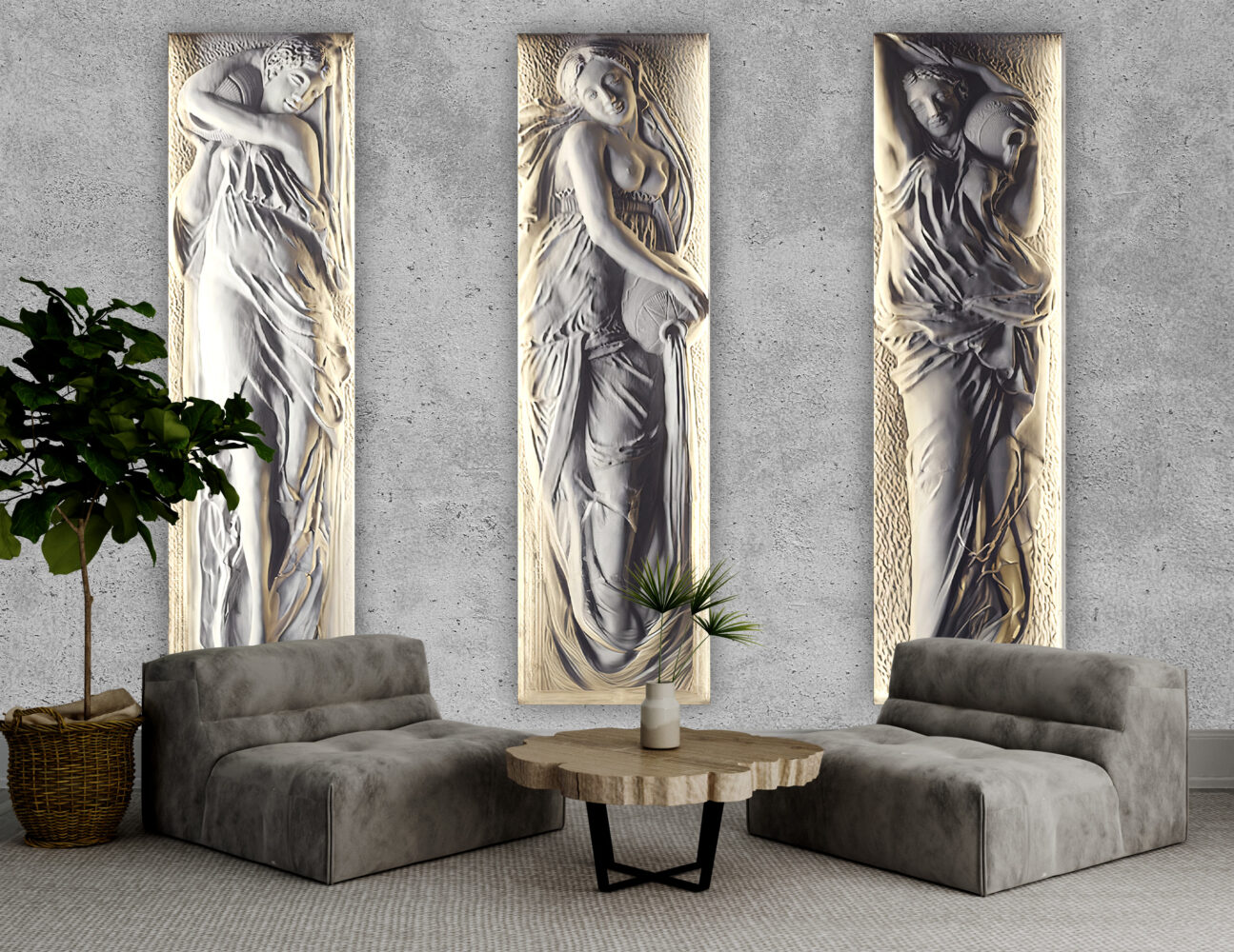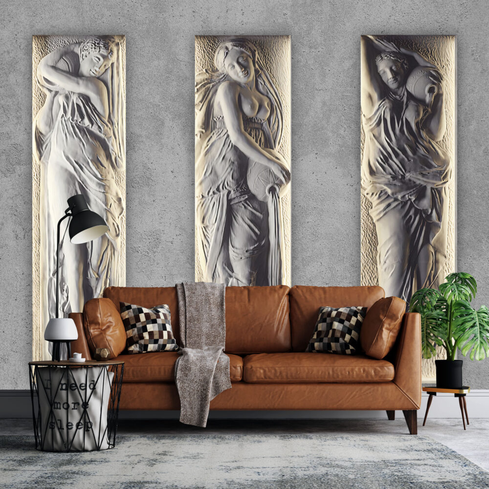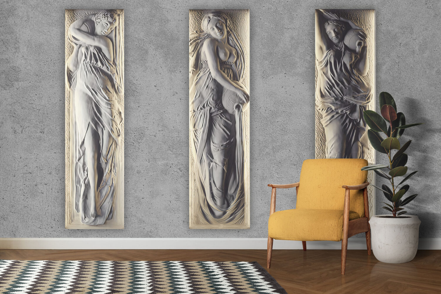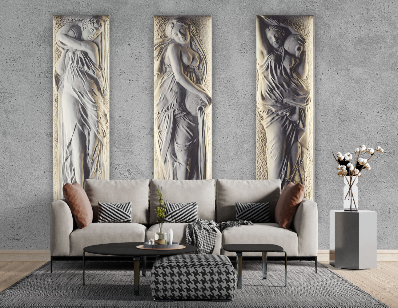 Üç Kadın Rölyef Mermer Heykel Duvar Kağıdı üretimi, uygulanmasını isteyeceğiniz boyut ve konumuna uygun olarak talepleriniz doğrultusunda size özel imal edilir.