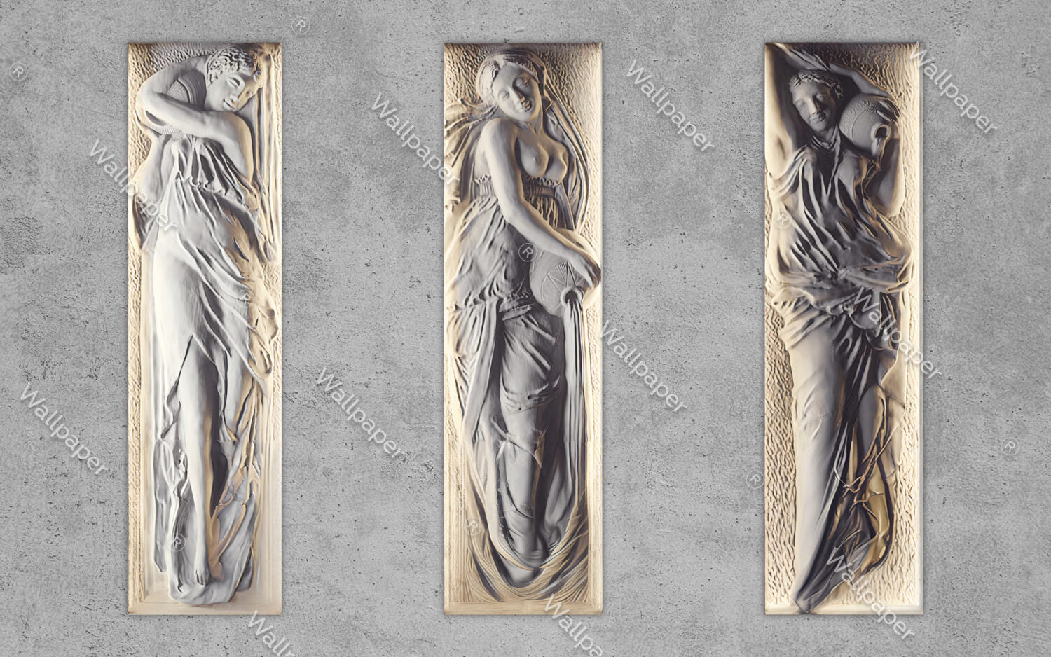 Üç Kadın Rölyef Mermer Heykel Duvar Kağıdı
