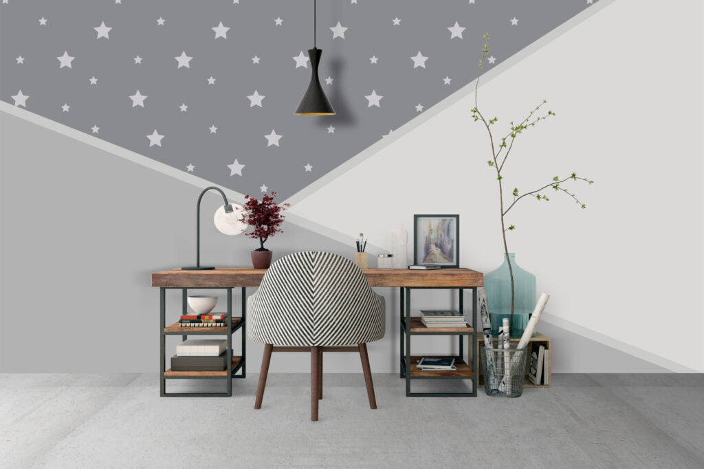 Üç Renk ve Yıldız Desenli 3D Duvar Kağıdı | Duvar Kağıdı Marketi
