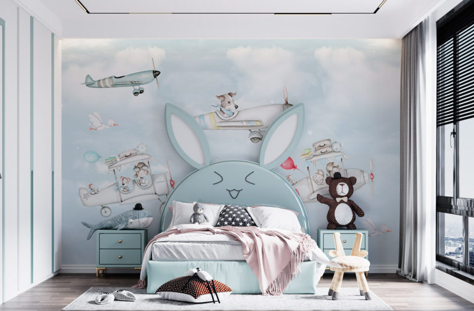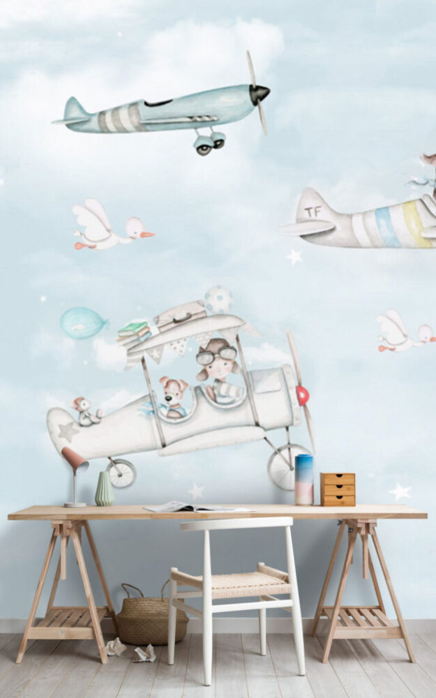 Uçağı Süren Köpek Desenli 3D Duvar Kağıdı | Duvar Kağıdı Marketi üretimi, uygulanmasını isteyeceğiniz boyut ve konumuna uygun olarak talepleriniz doğrultusunda size özel imal edilir.