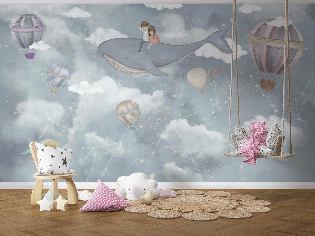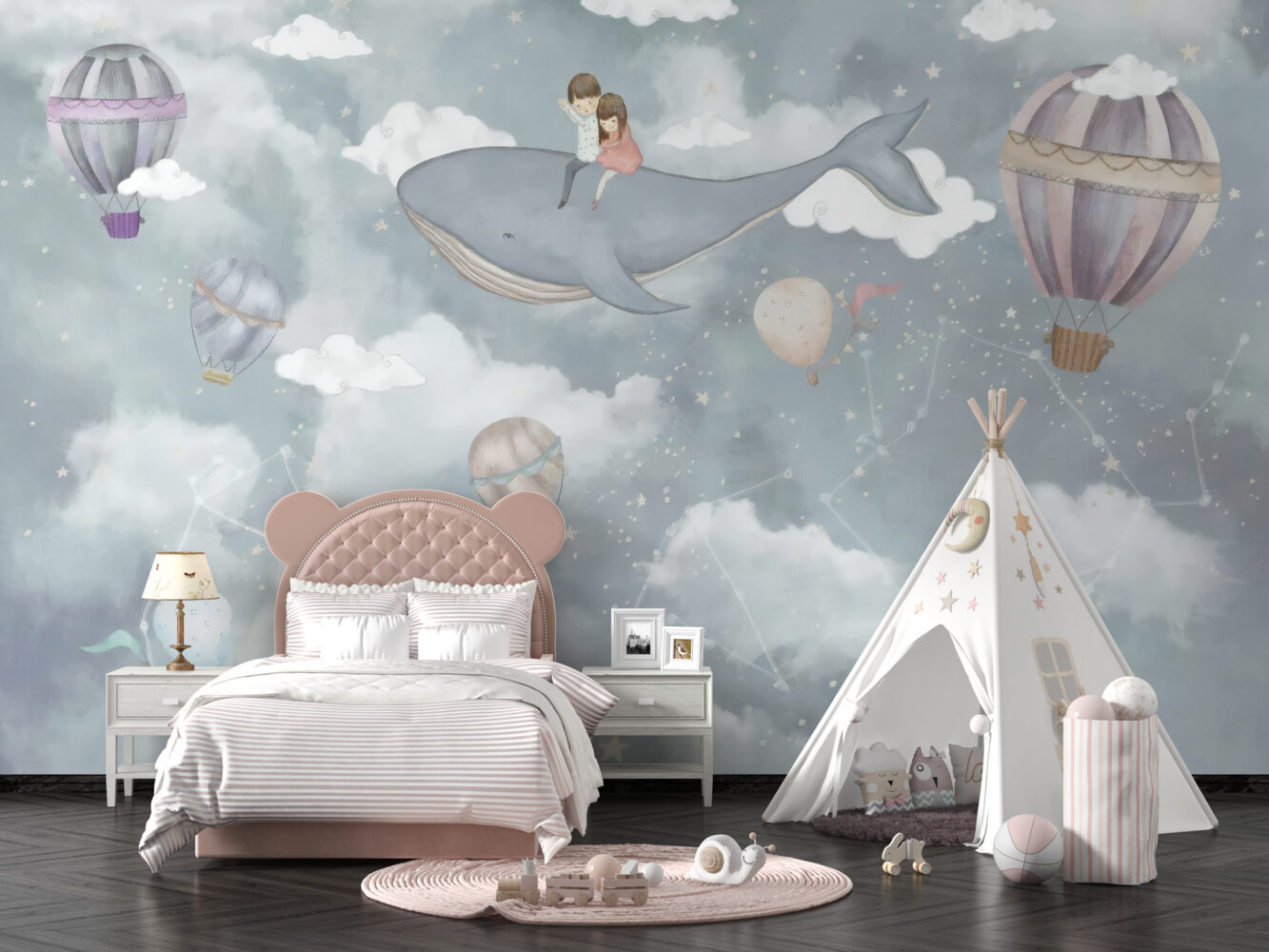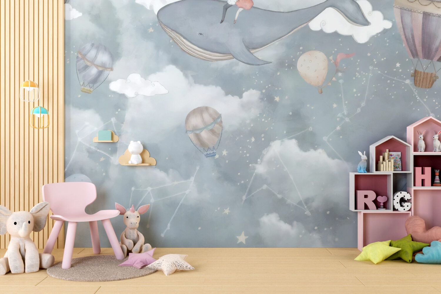 Uçan Balina Ve Balonlar Duvar Kağıdı üretimi, uygulanmasını isteyeceğiniz boyut ve konumuna uygun olarak talepleriniz doğrultusunda size özel imal edilir.