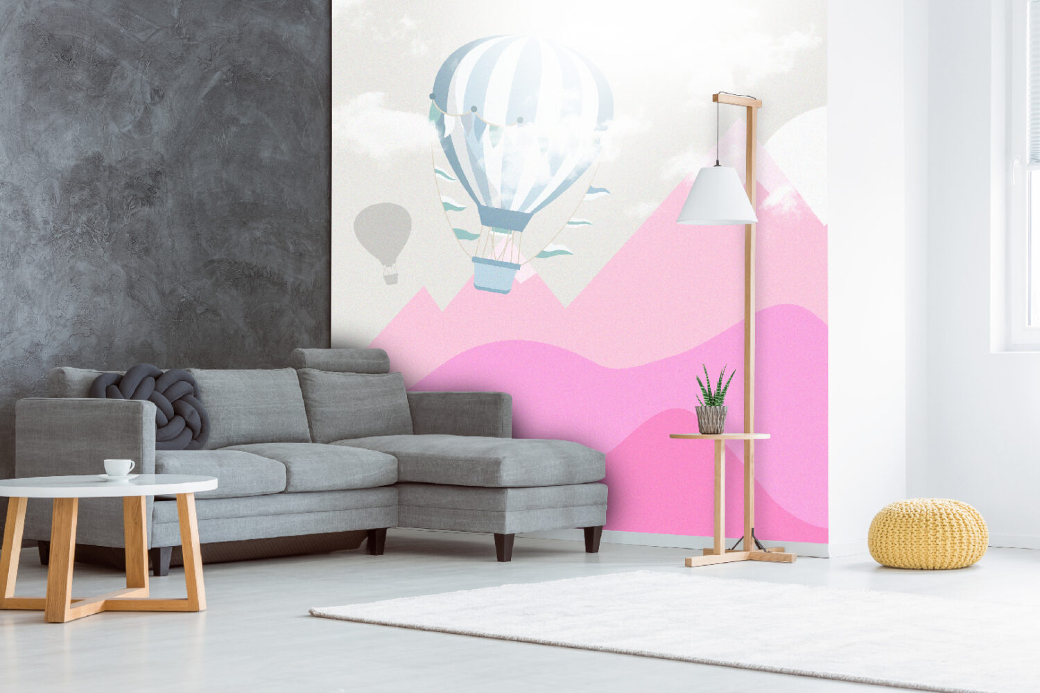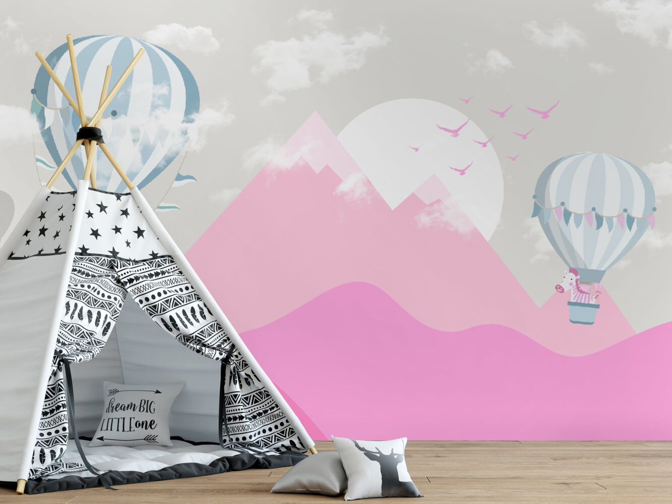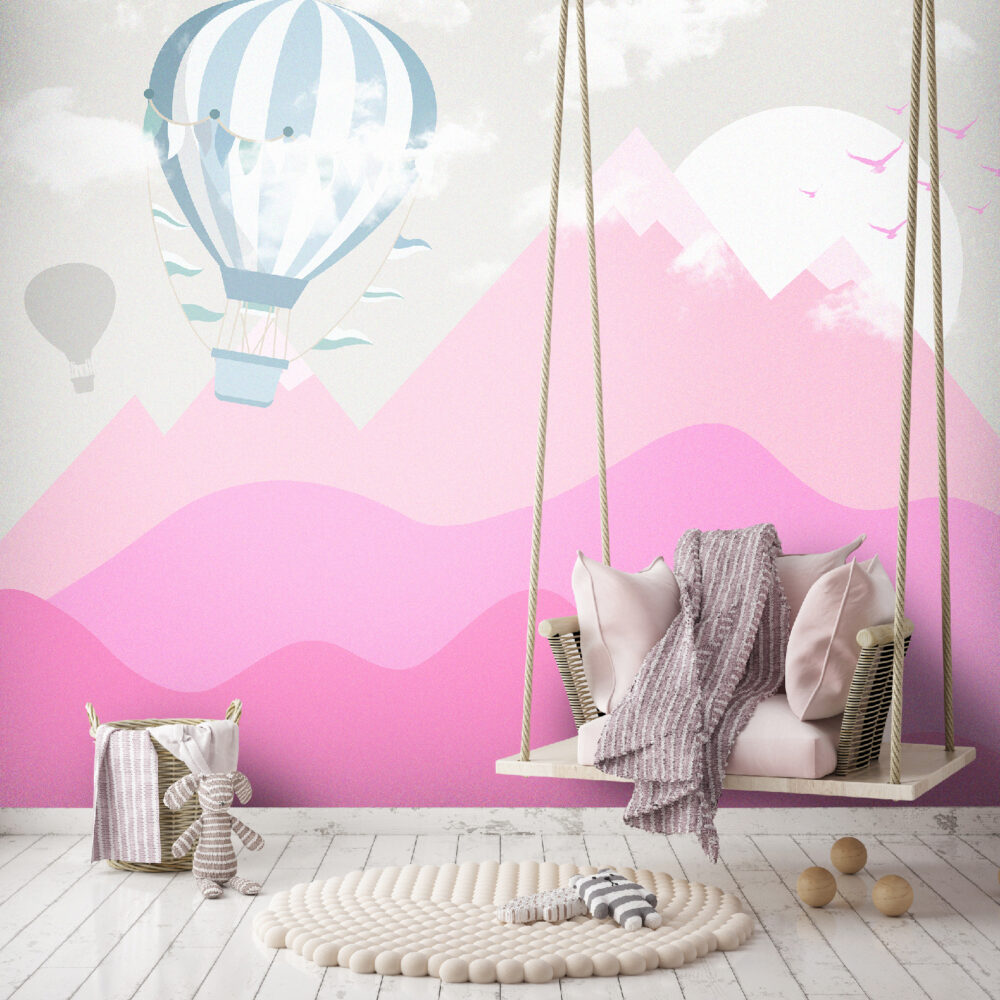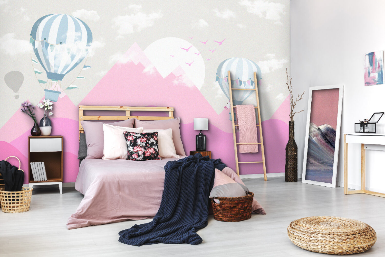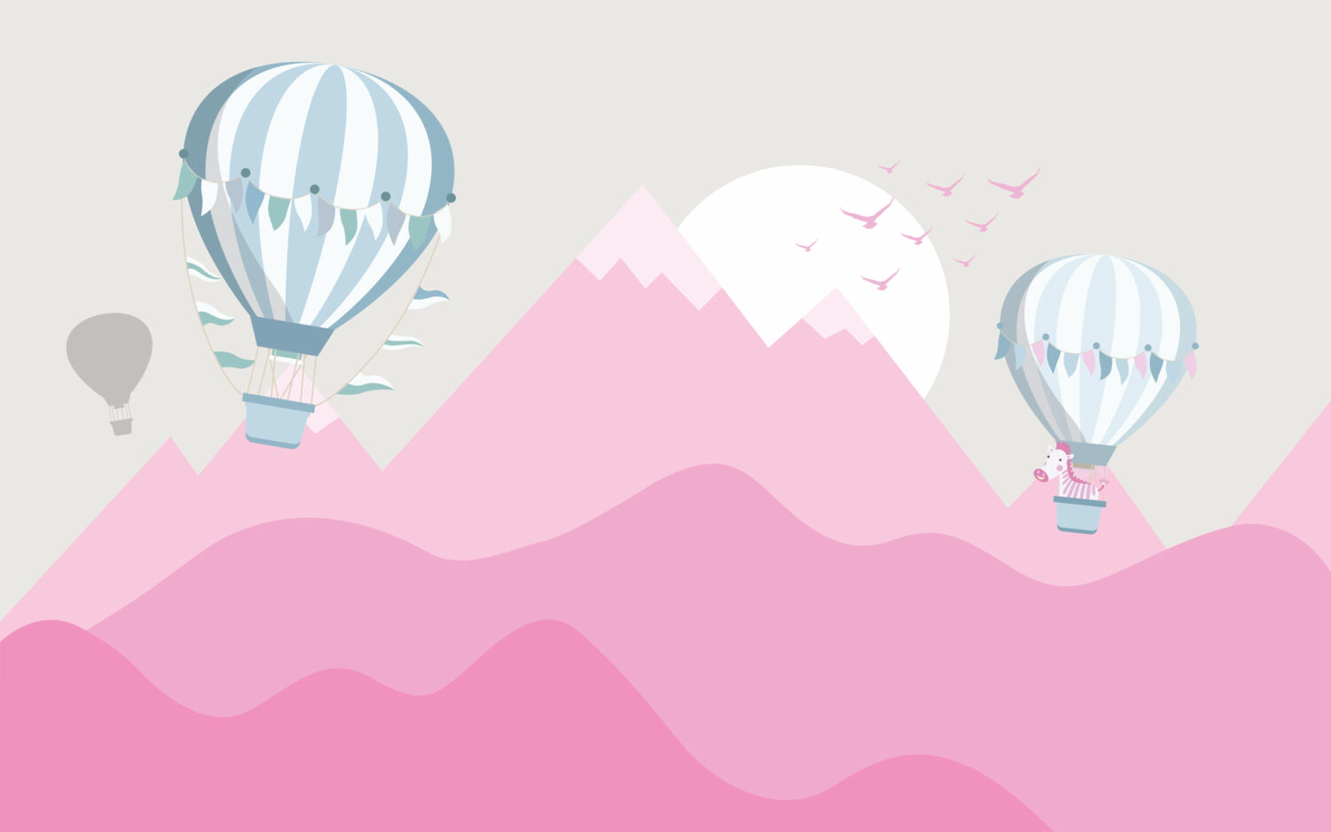 Uçan Balon Ve Soft Pembe Dağlar 3D Duvar Kağıdı Duvar Kağıdı Ürün Bilgisi