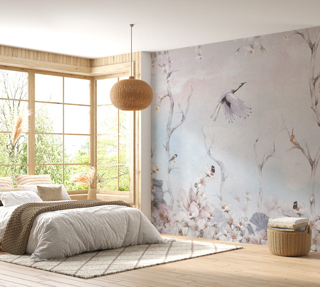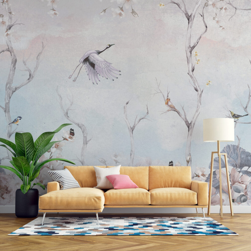 Uçan Leylek Ve Ağaç Dallarında Ki Kuşlar Duvar Kağıdı üretimi, uygulanmasını isteyeceğiniz boyut ve konumuna uygun olarak talepleriniz doğrultusunda size özel imal edilir.