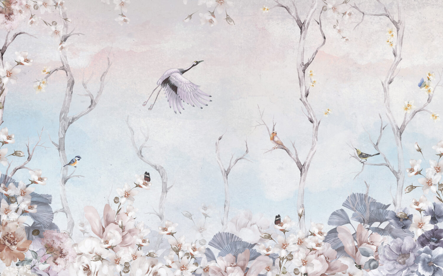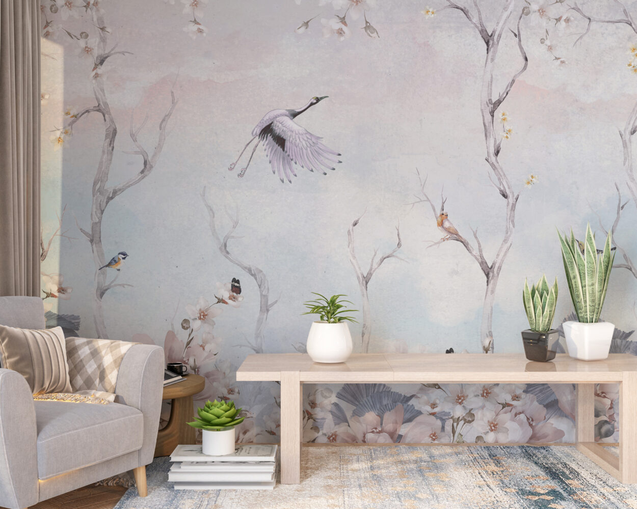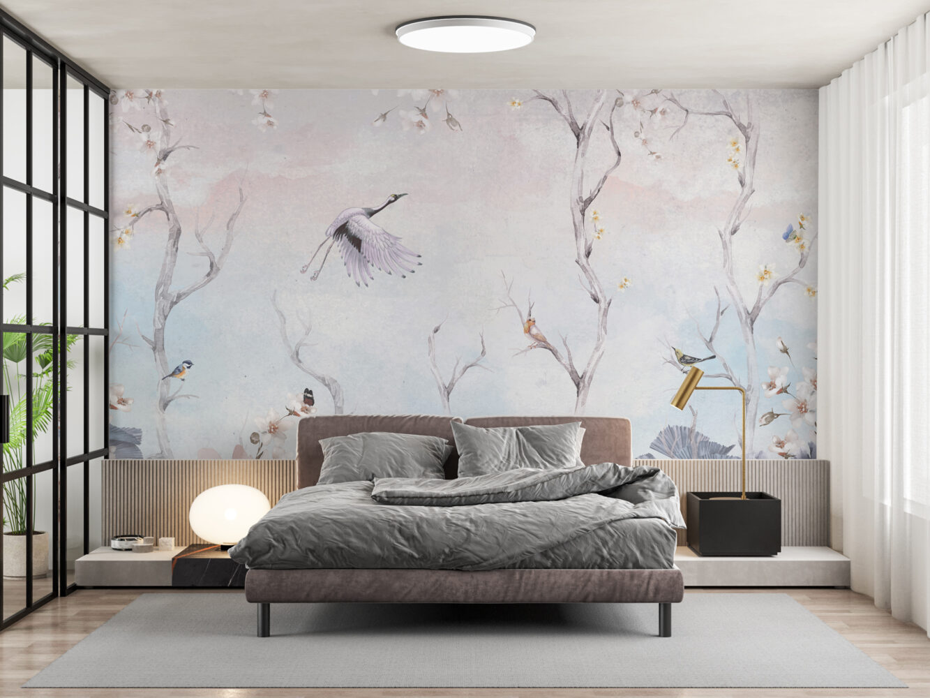 Uçan Leylek Ve Ağaç Dallarında Ki Kuşlar Duvar Kağıdı Duvar Kağıdı Ürün Bilgisi