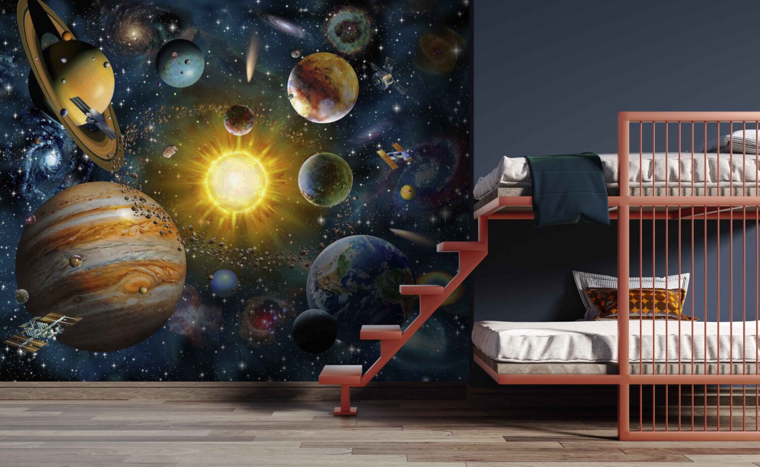 Uzay Boşluğunda Gezegenler Duvar Kağıdı üretimi, uygulanmasını isteyeceğiniz boyut ve konumuna uygun olarak talepleriniz doğrultusunda size özel imal edilir.