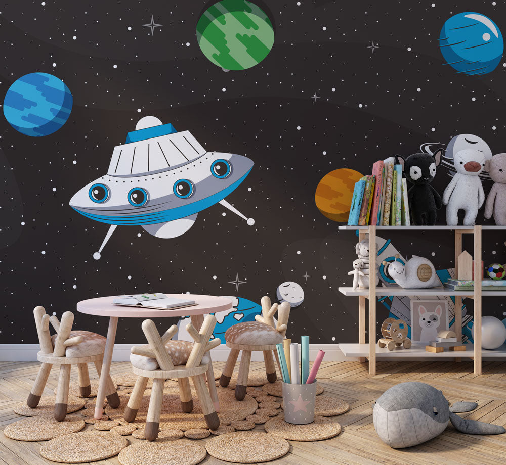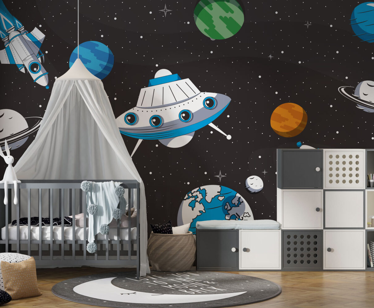 Uzay Boşluğundaki Yıldızlar ve Gezegenler Duvar Kağıdı üretimi, uygulanmasını isteyeceğiniz boyut ve konumuna uygun olarak talepleriniz doğrultusunda size özel imal edilir.