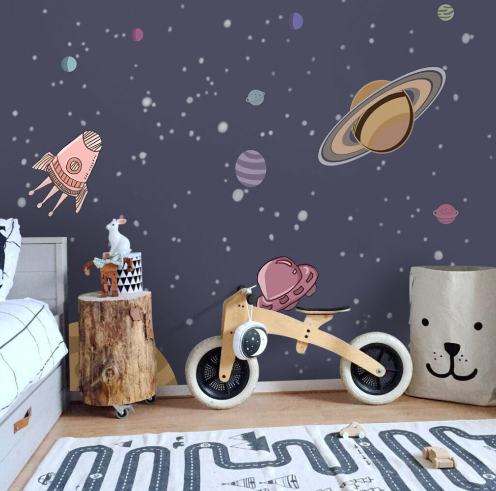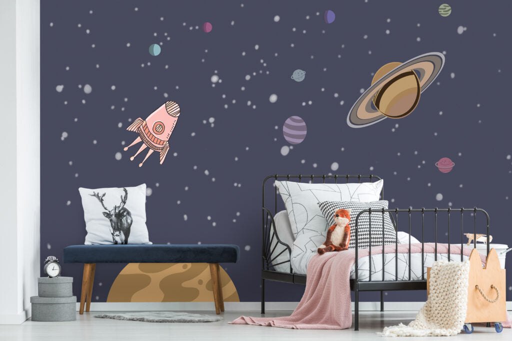 Uzay Mekiği ve Gezegen Desenli 3D Duvar Kağıdı | Duvar Kağıdı Marketi üretimi, uygulanmasını isteyeceğiniz boyut ve konumuna uygun olarak talepleriniz doğrultusunda size özel imal edilir.
